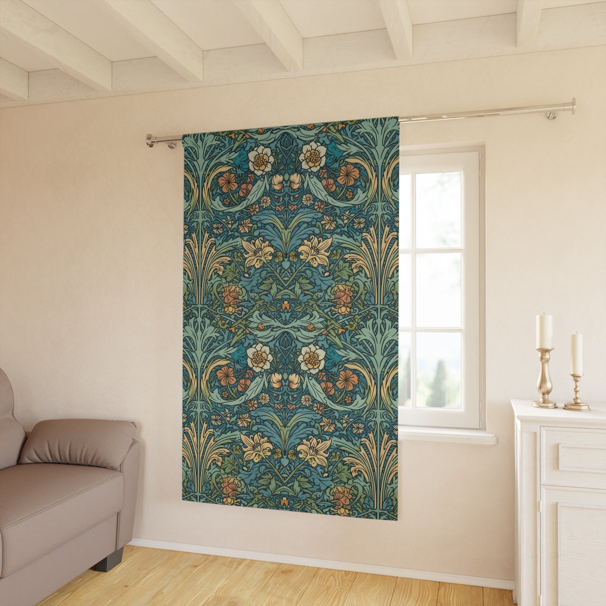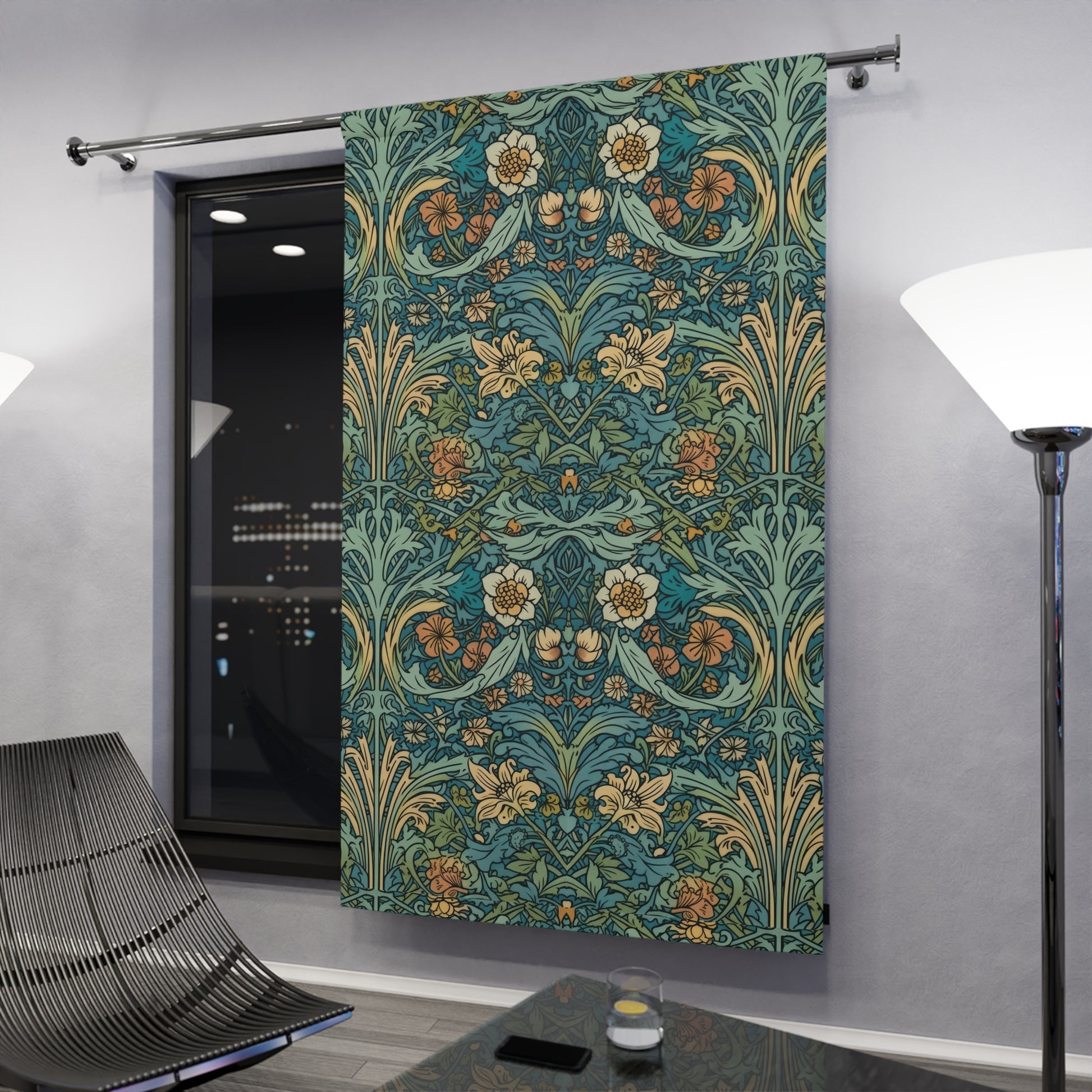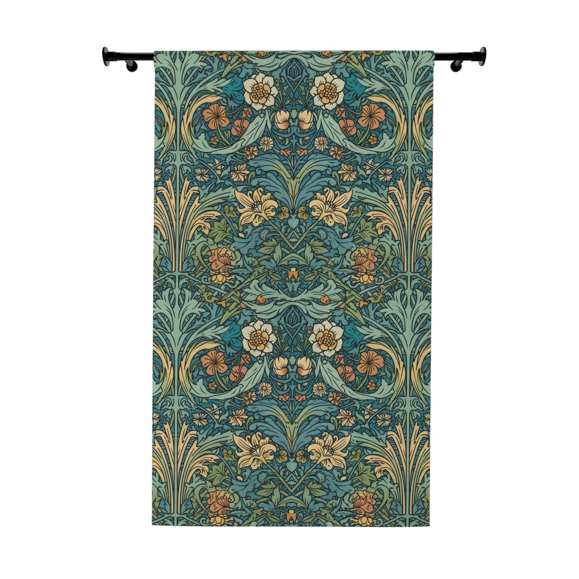 Aqua Victorian William Morris Style Window Curtains (1 Piece)