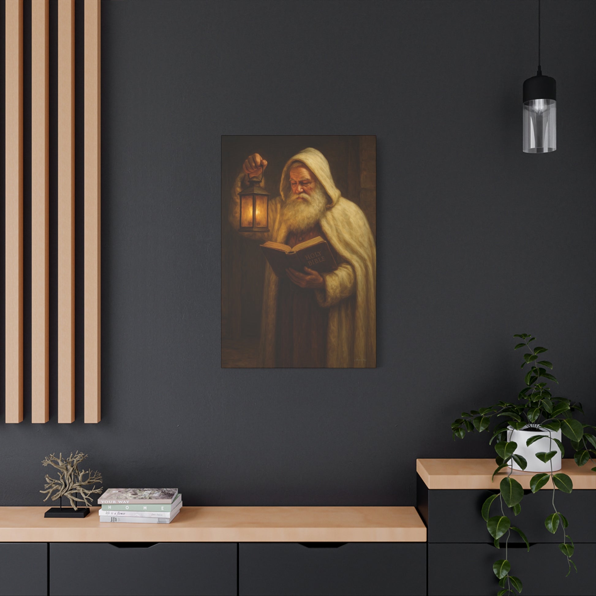 Canvas Wall Art, Old World Santa with Lantern and BibleCozy Home Decor, Rustic Decor for Xmas