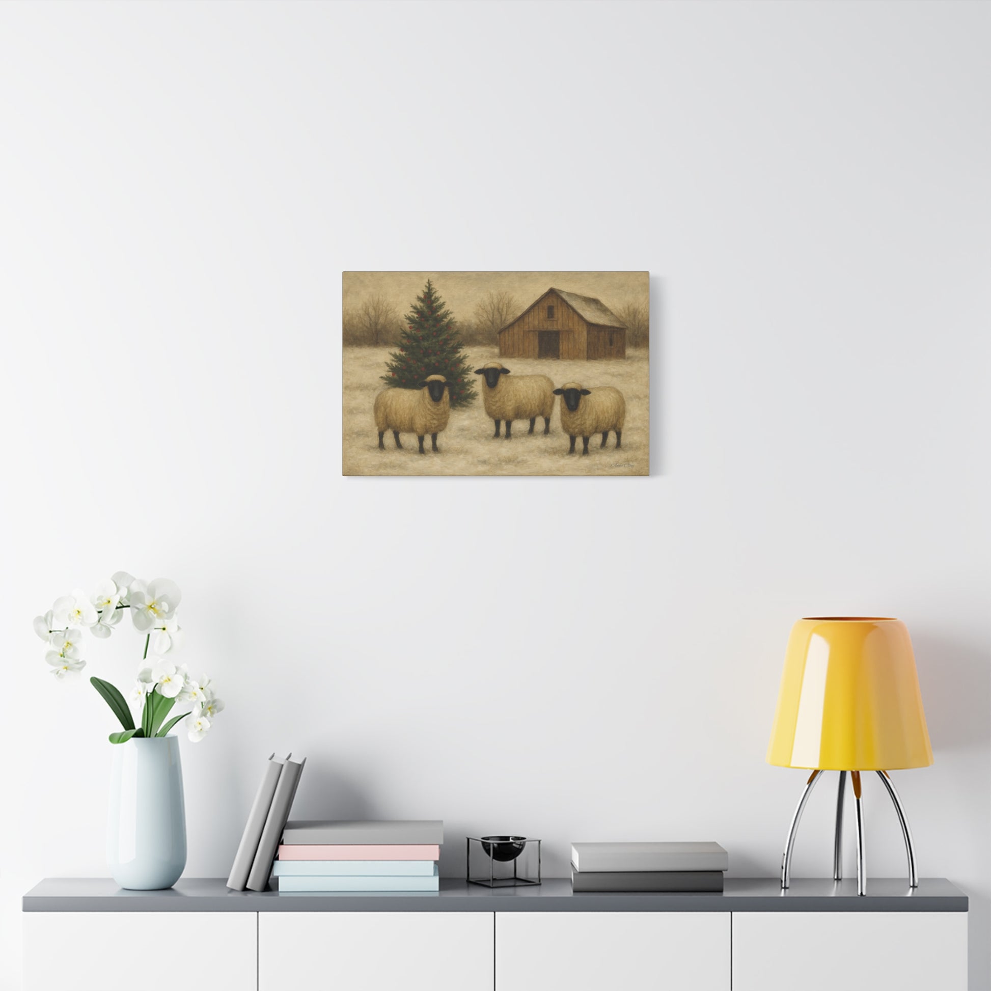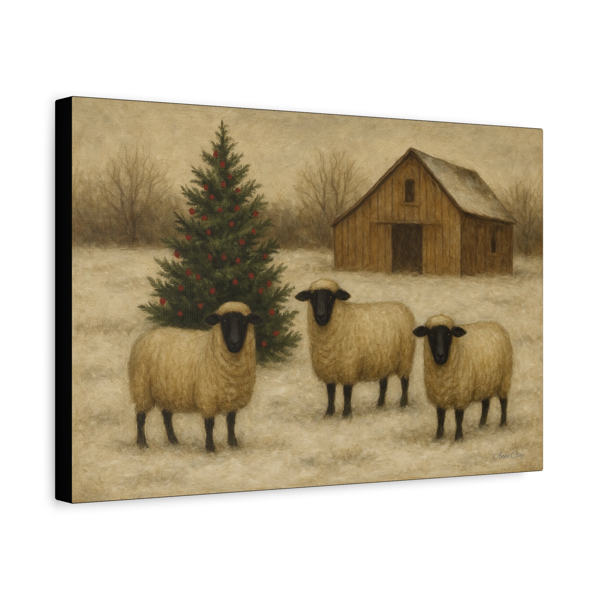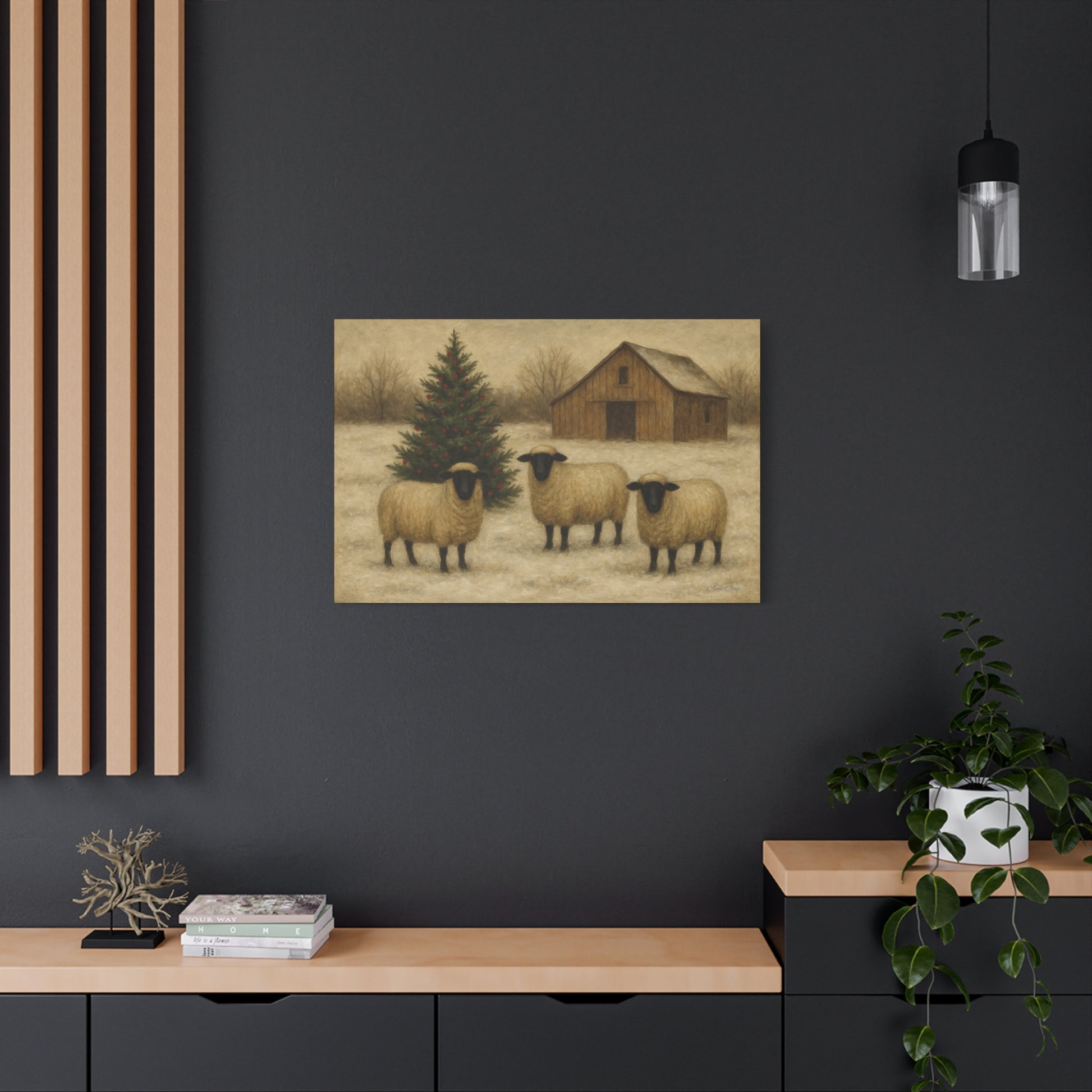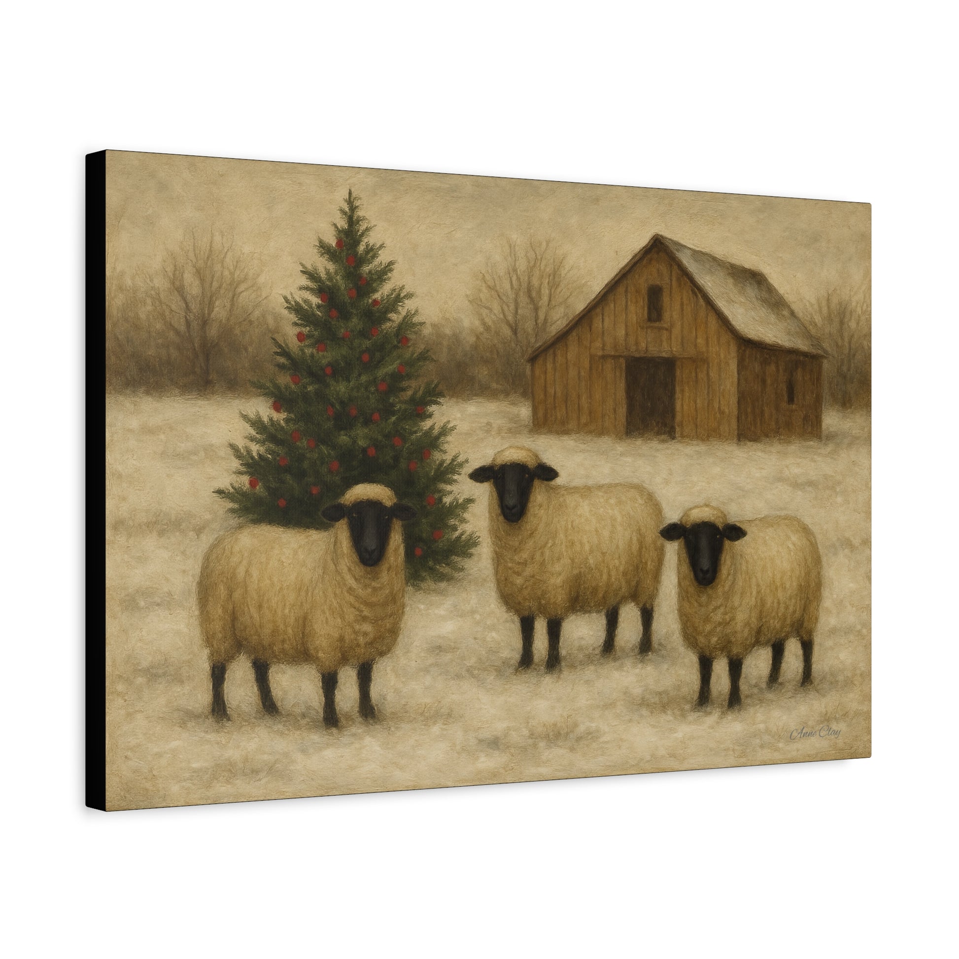 Christmas Sheep Canvas Wall Art, Holiday Decor, Farmhouse Style, Rustic Artwork, Winter Home Decoration