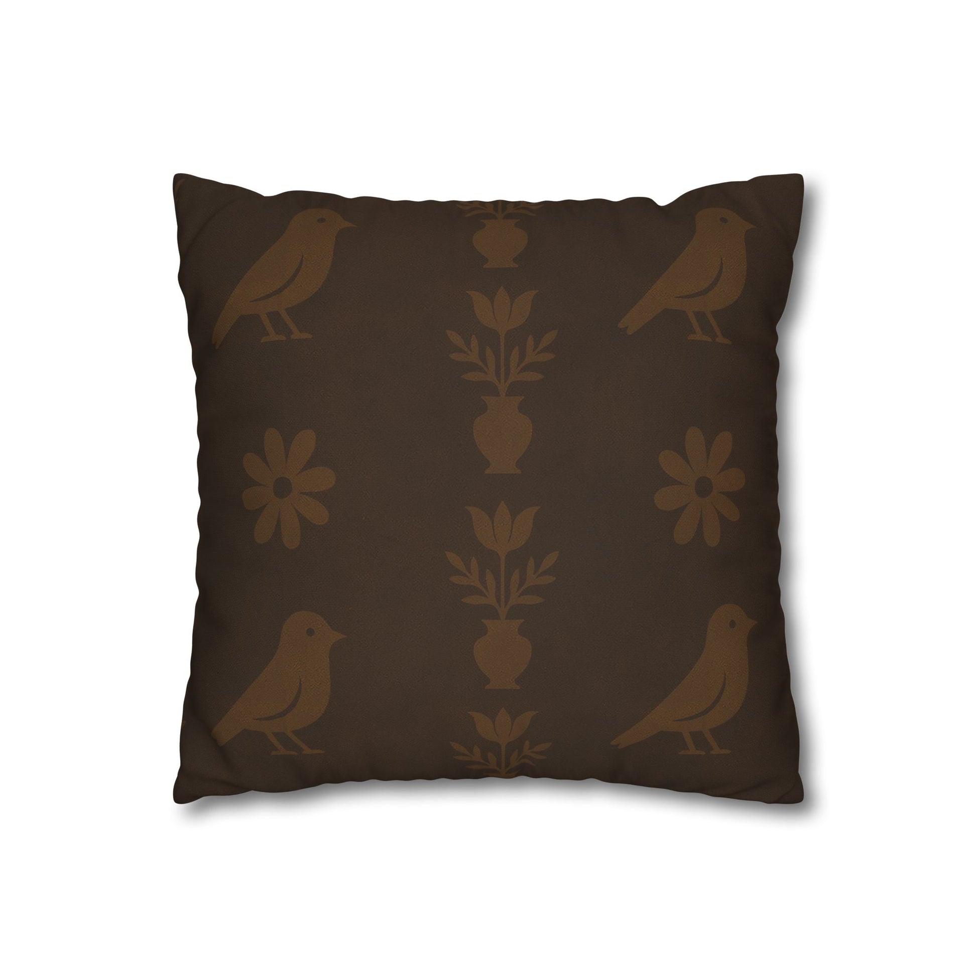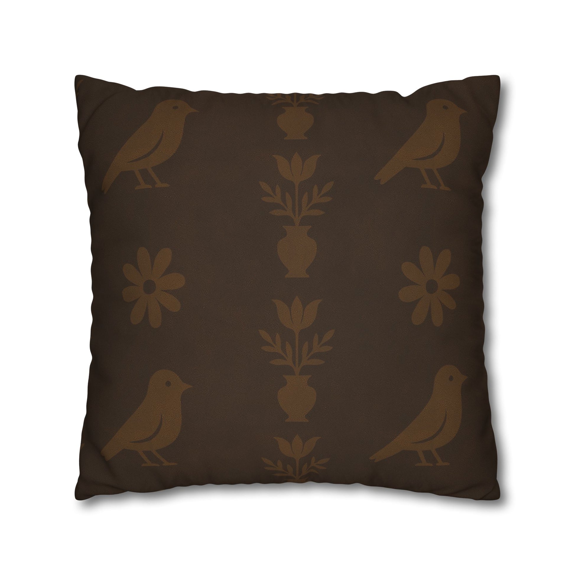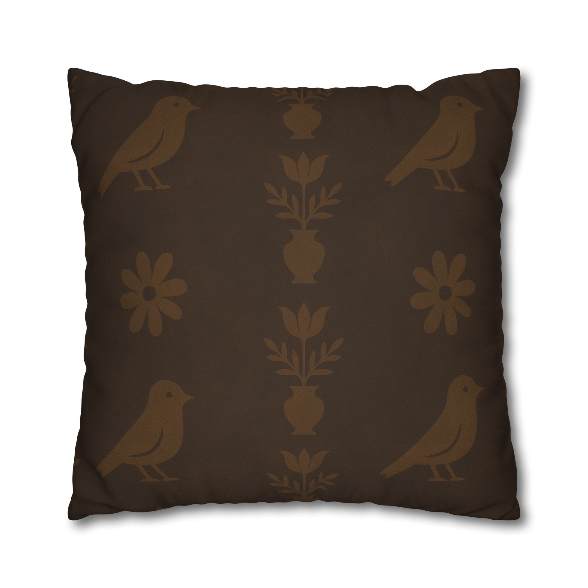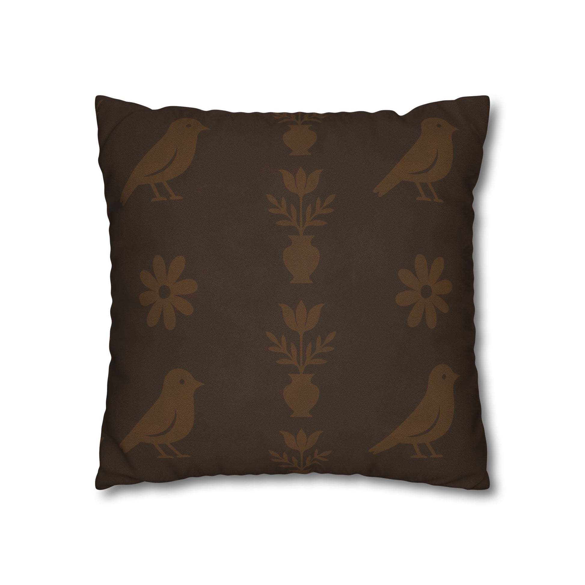 Cozy Bird-Patterned Poly Canvas Pillowcase, Decorative Throw Pillow Cover, Home Decor, Gift for Bird Lovers, Couch Cushion