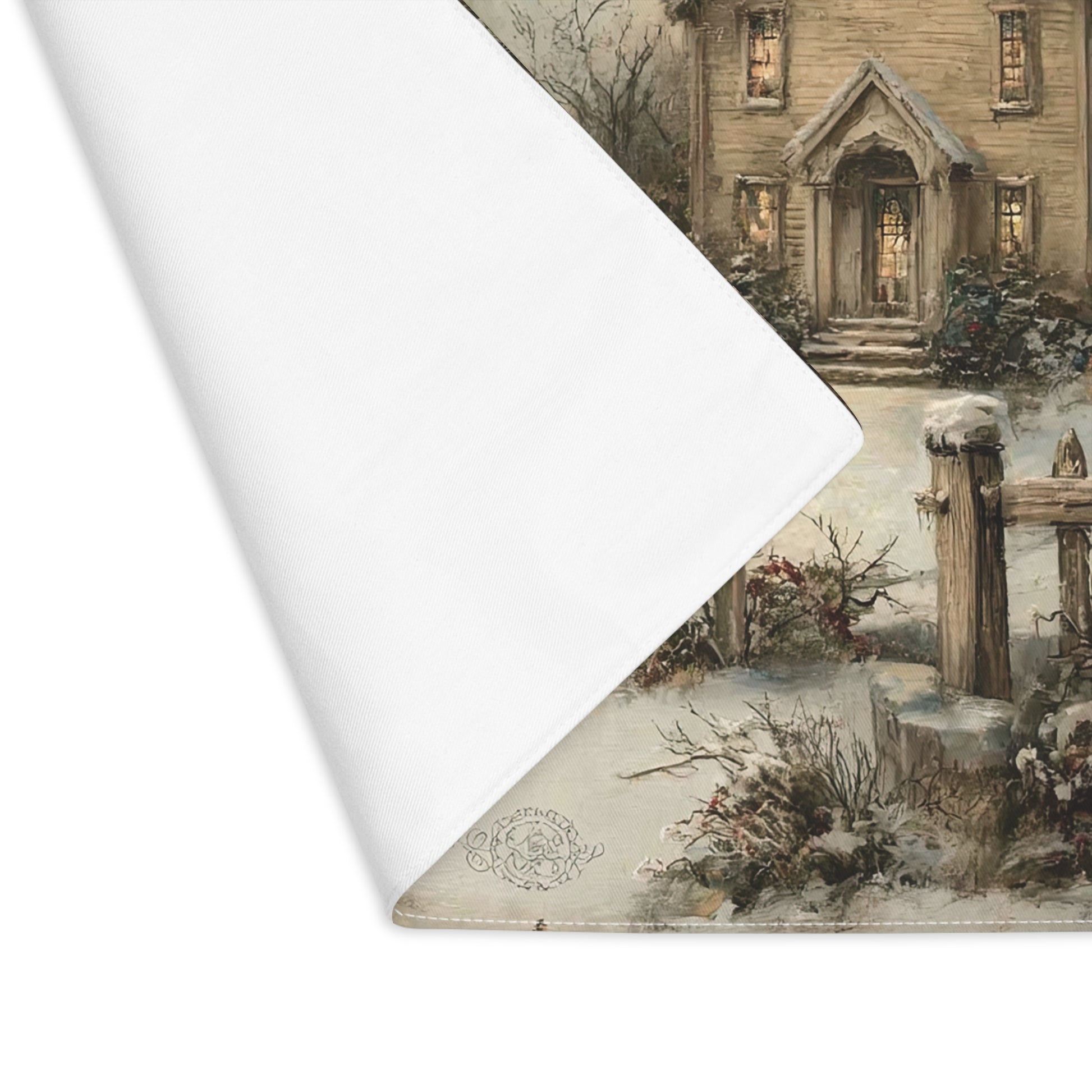 Elevate your dining experience with this charming placemat, designed to bring warmth and a vintage touch to your table setting. Featuring a serene winter landscape complete with a sheep, this placemat invites a cozy, inviting atmosphere perfect for family gatherings and festive dinners. Ideal for anyone who loves rustic decor or wants to add a unique flair to their dining space. This placemat makes a thoughtful gift for housewarmings, holidays, and special occasions like Christmas or Thanksgiving, helping create memorable meals with loved ones.
