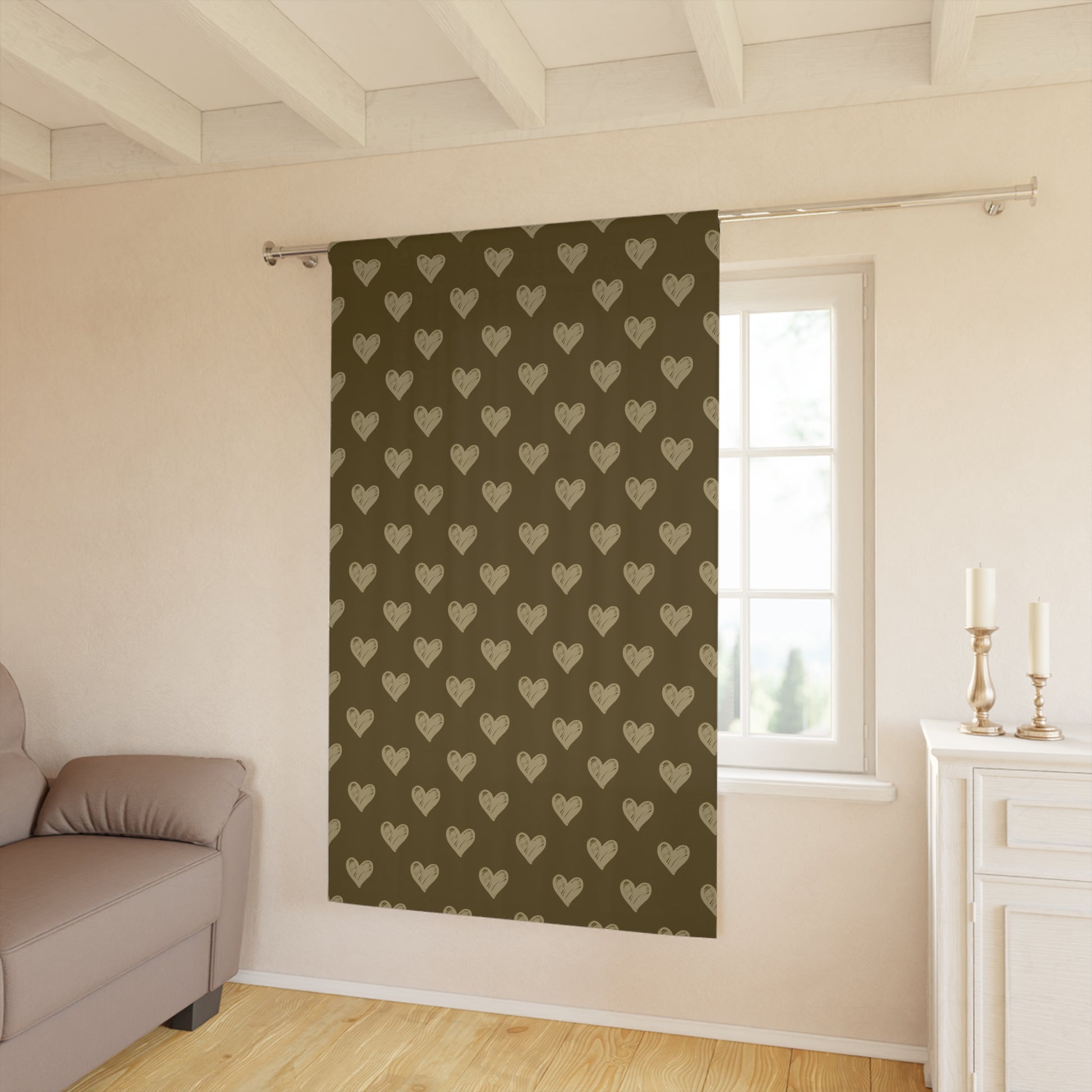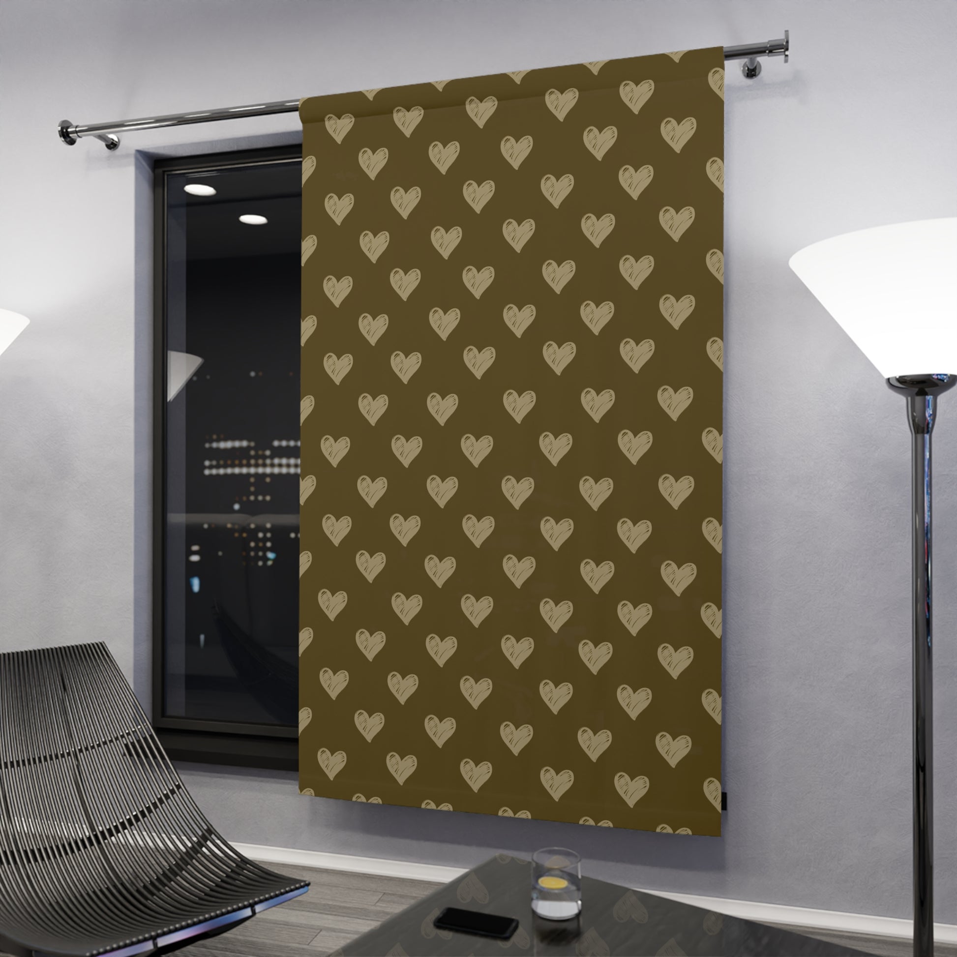 Cream Hearts on Greeny Gold Window Curtains (1 Piece)