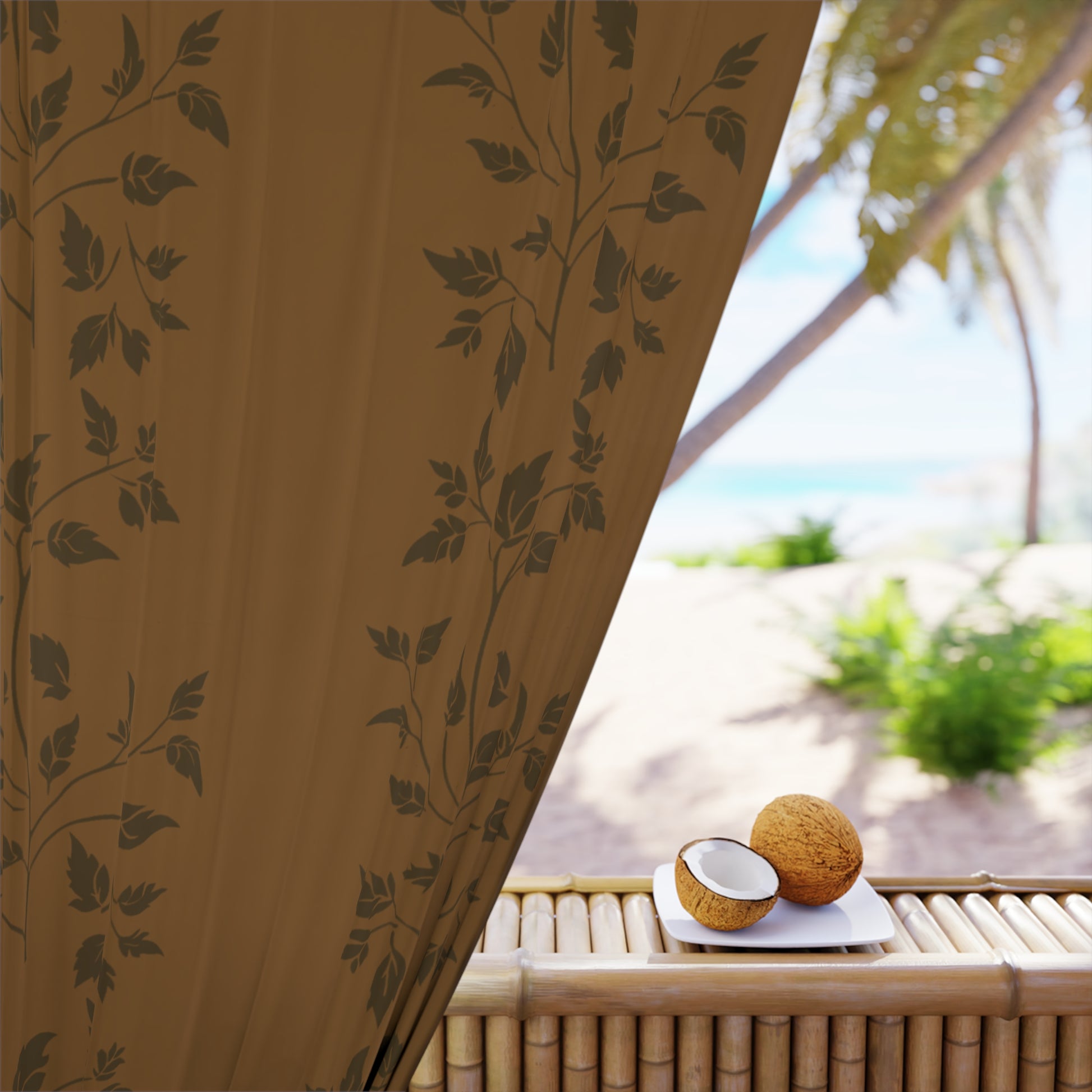 Gold Curtain with Vine Stencil Window Curtains (1 Piece)