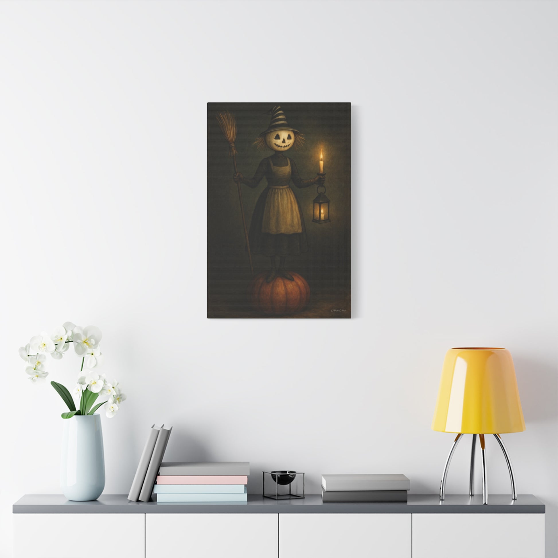 Halloween Witch Canvas Art Print, Spooky Home Decor, Pumpkin Lantern Wall Art, Fall Decoration, Halloween Gift