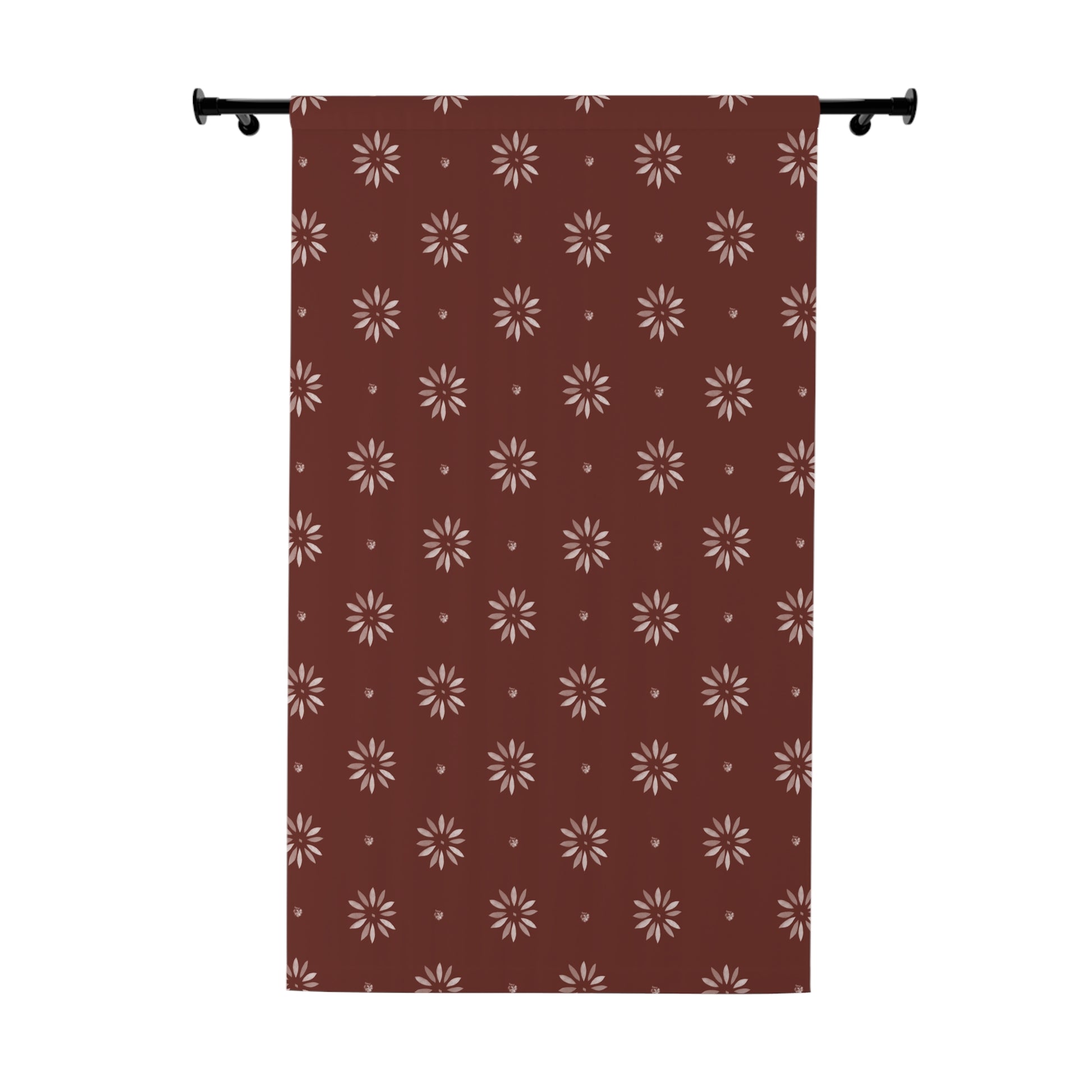 Maroon and White Large Stencil Window Curtains (1 Piece)