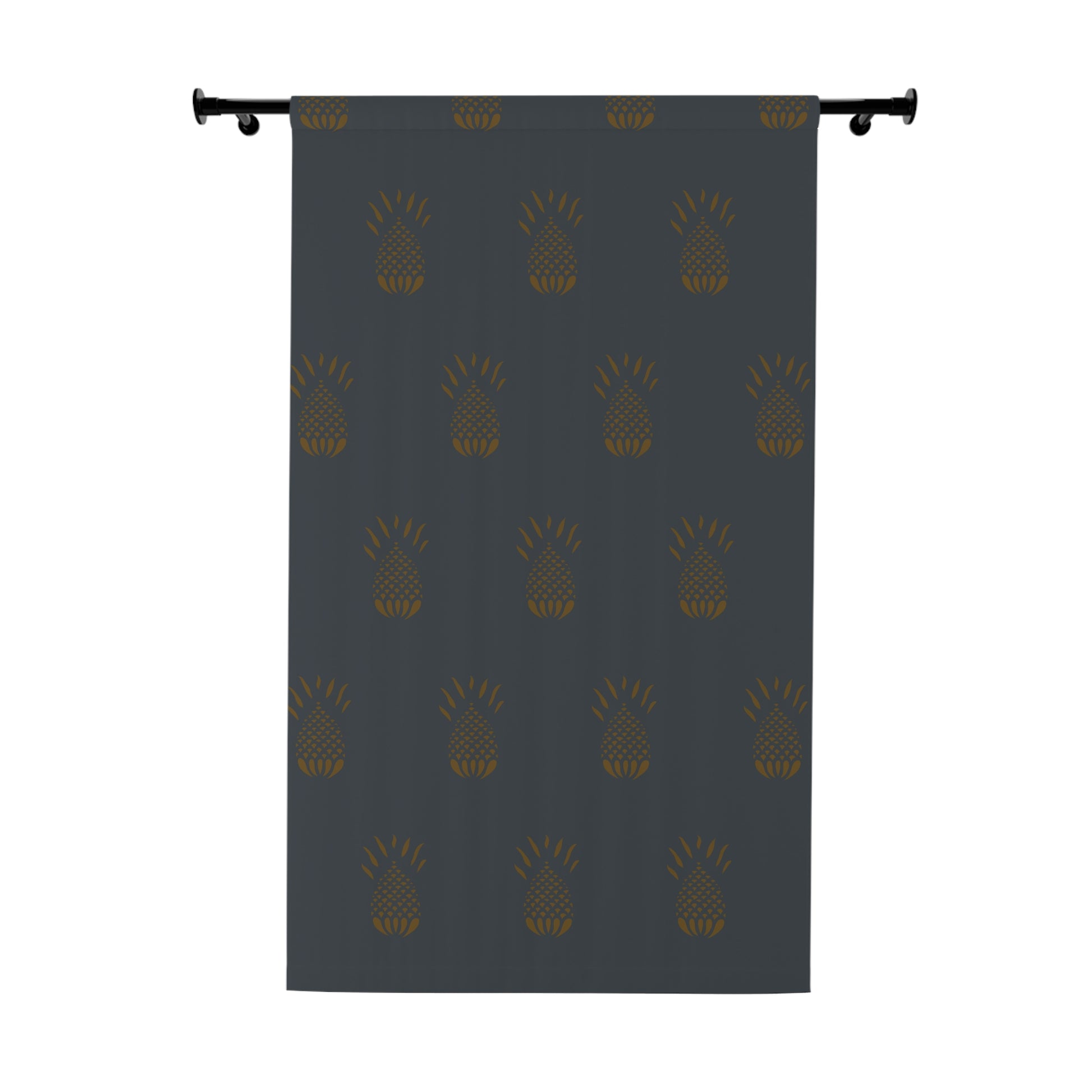 Mustard on Blue Pineapple Window Curtains (1 Piece)