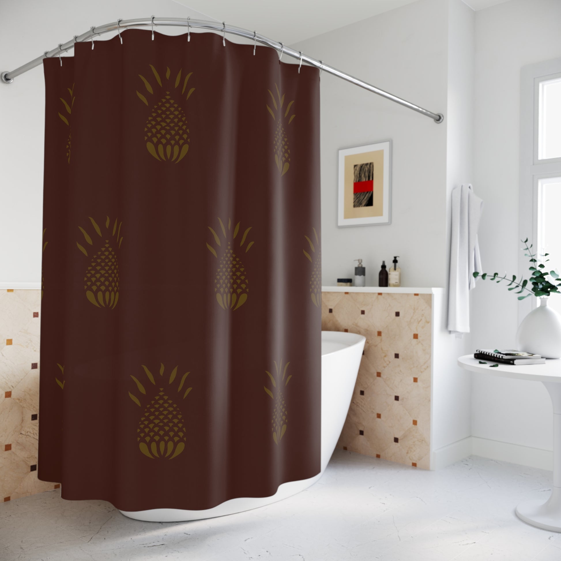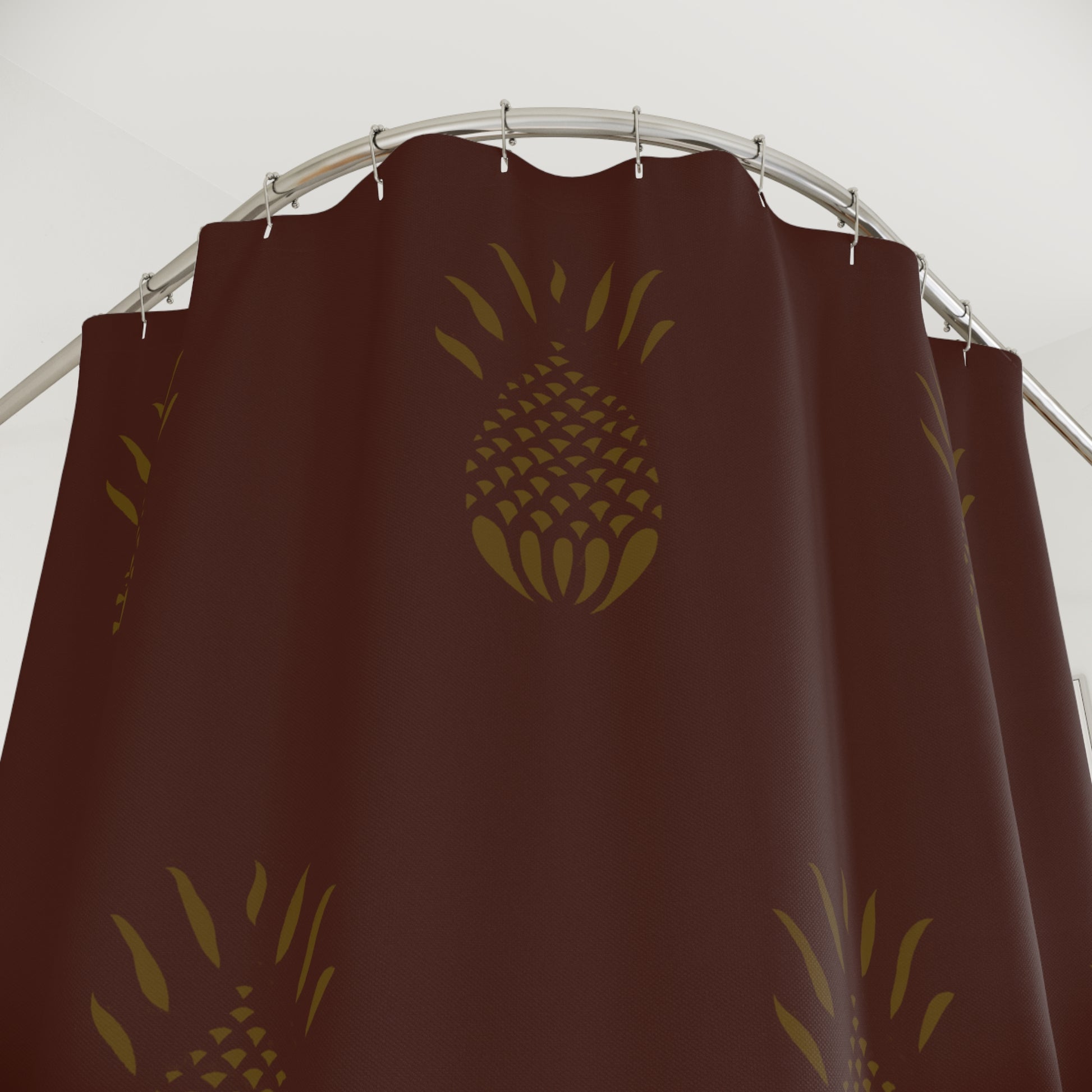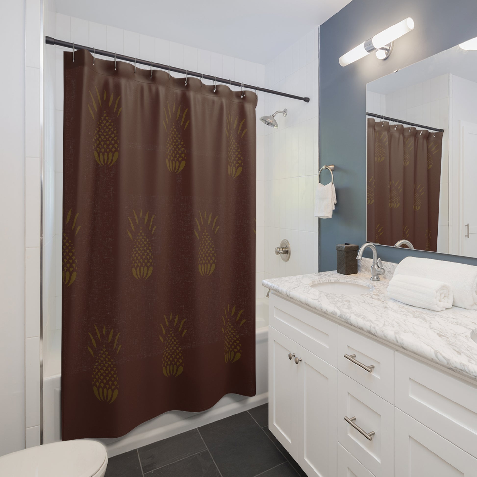 Mustard Pineapple Early American Stencil on Red Shower Curtains