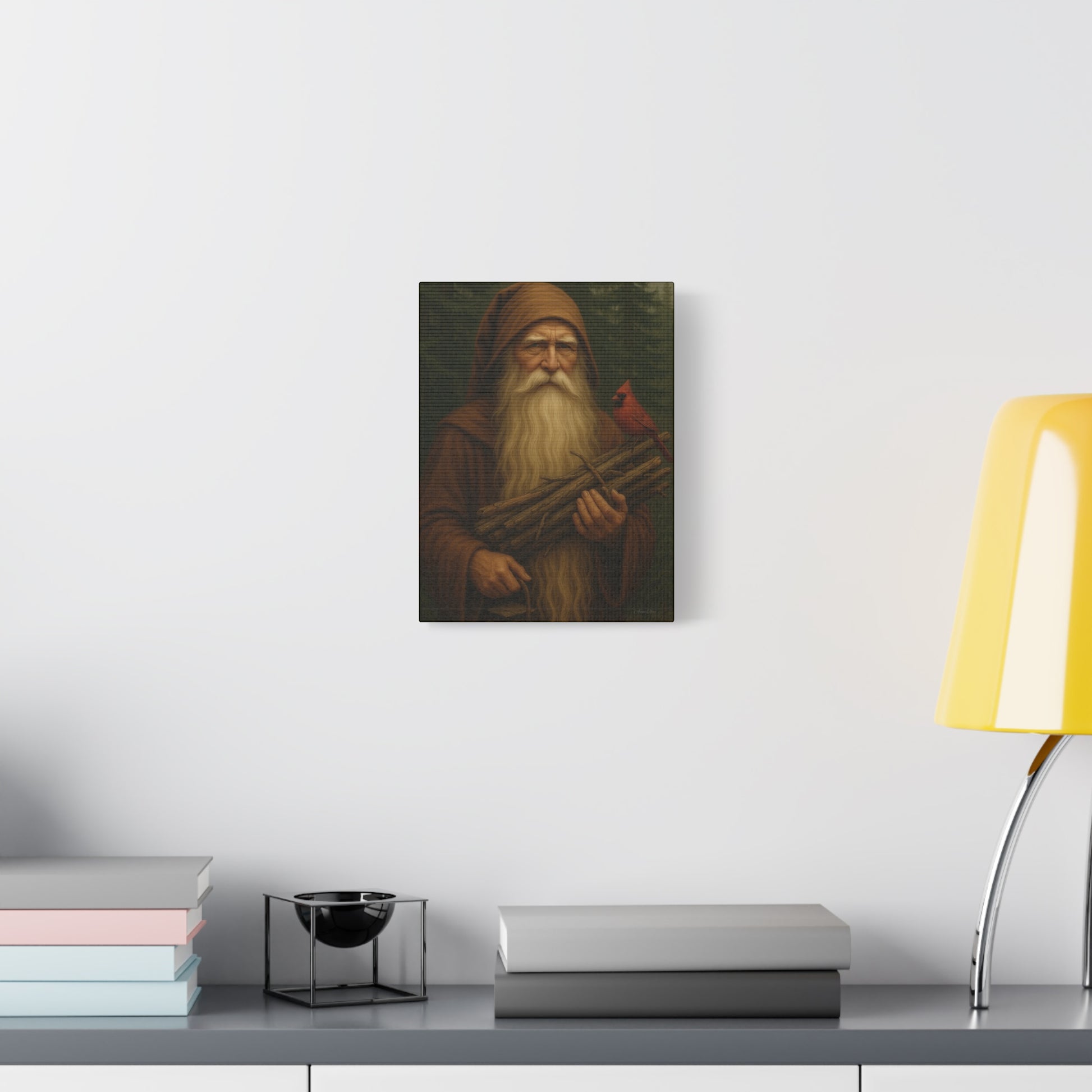 Old World Santa Rustic Nature Wall Art, Canvas Print, Forest Vibes, Perfect Gift for Nature Lovers, Home Decor, Woodland Theme, Cardinal Bird Decor