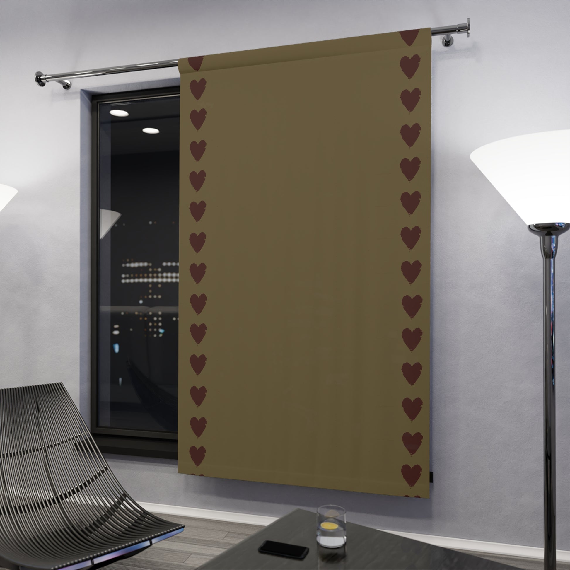 Red Hearts on Taupe Window Curtains (1 Piece)