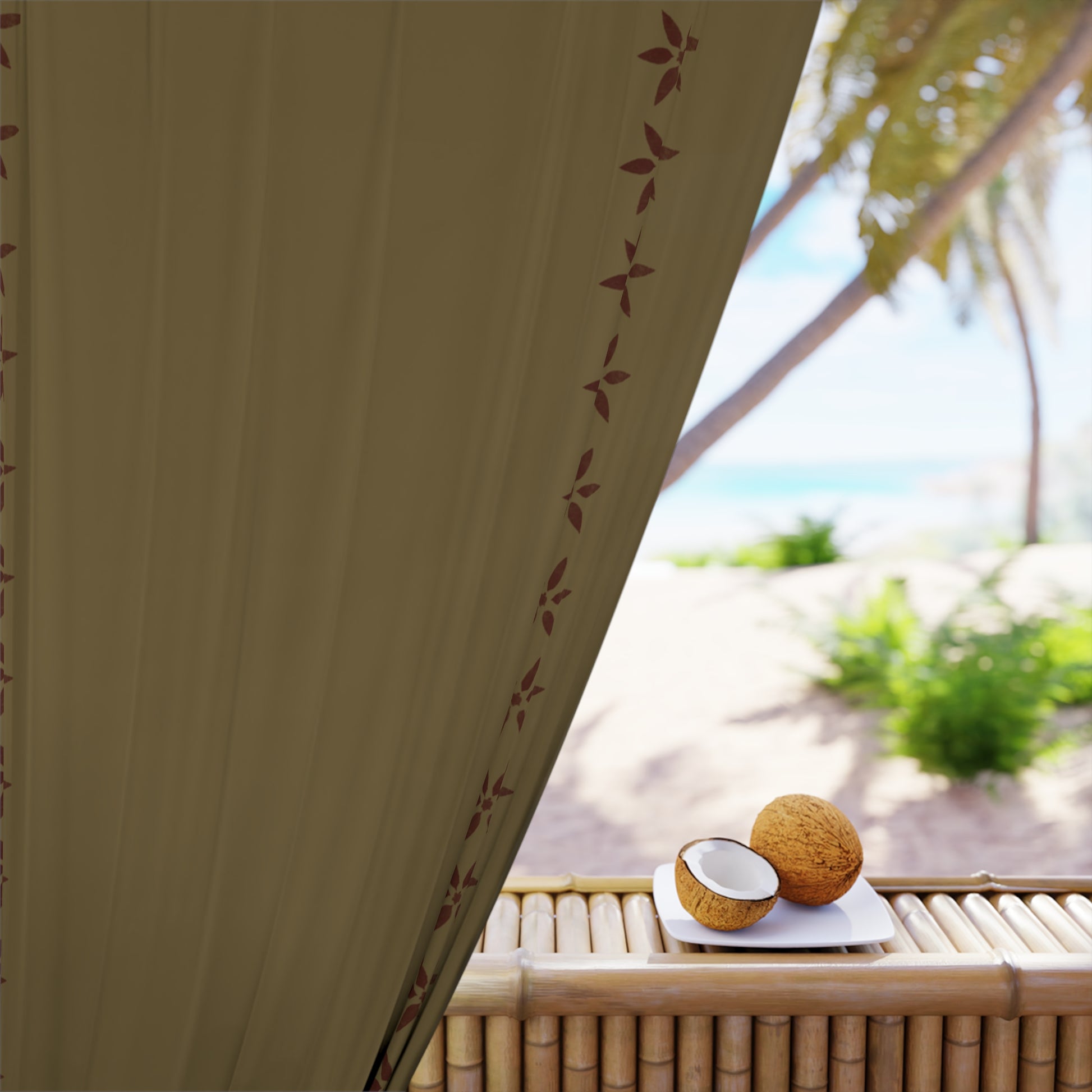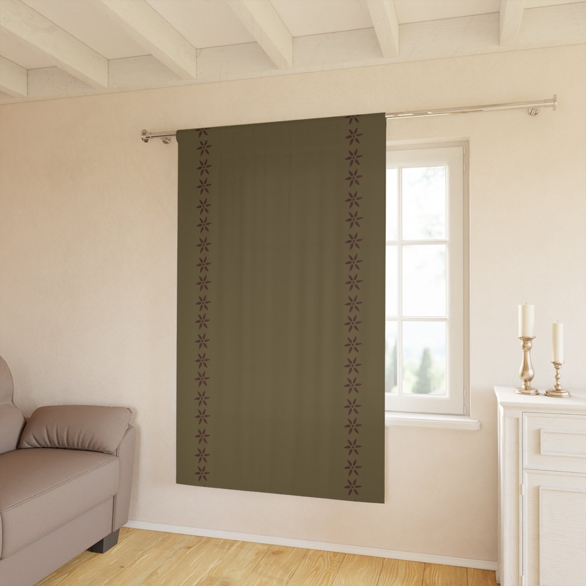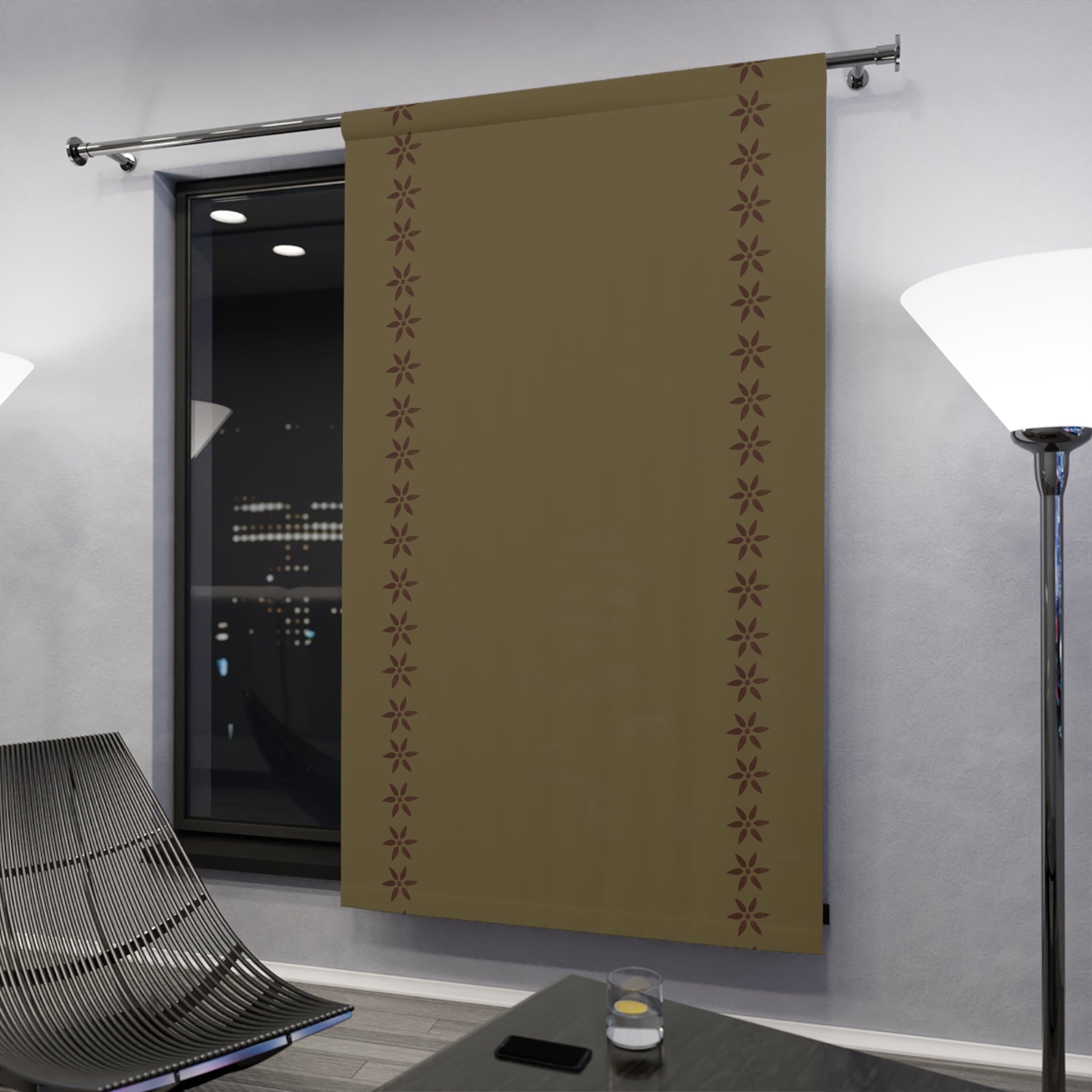 Red Petals on Taupe Window Curtains (1 Piece)