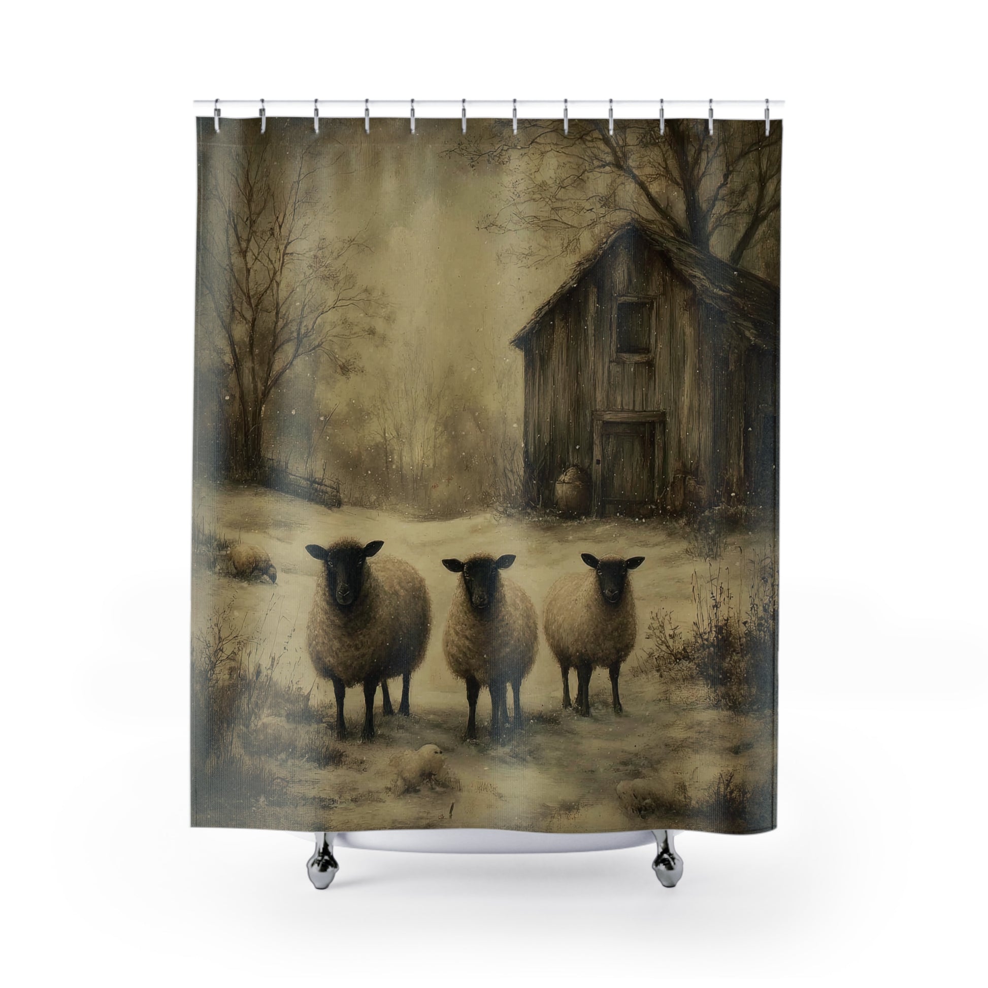 Rustic Farmhouse Shower Curtain, Cozy Bathroom Decor, Sheep Design,