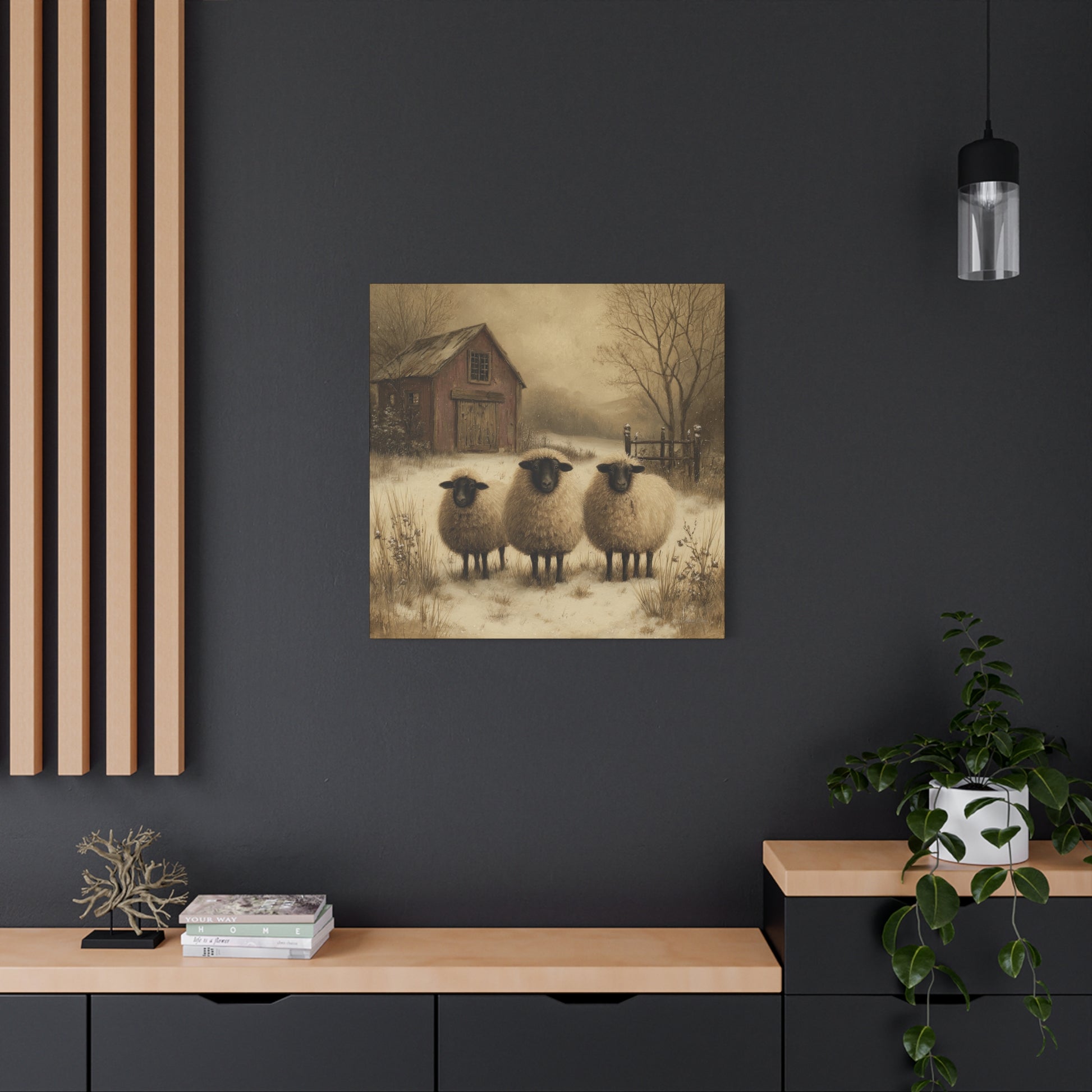 Rustic Sheep Canvas Art, Farmhouse Decor, Country Wall Art, Living Room Decor, Cozy Home Accent