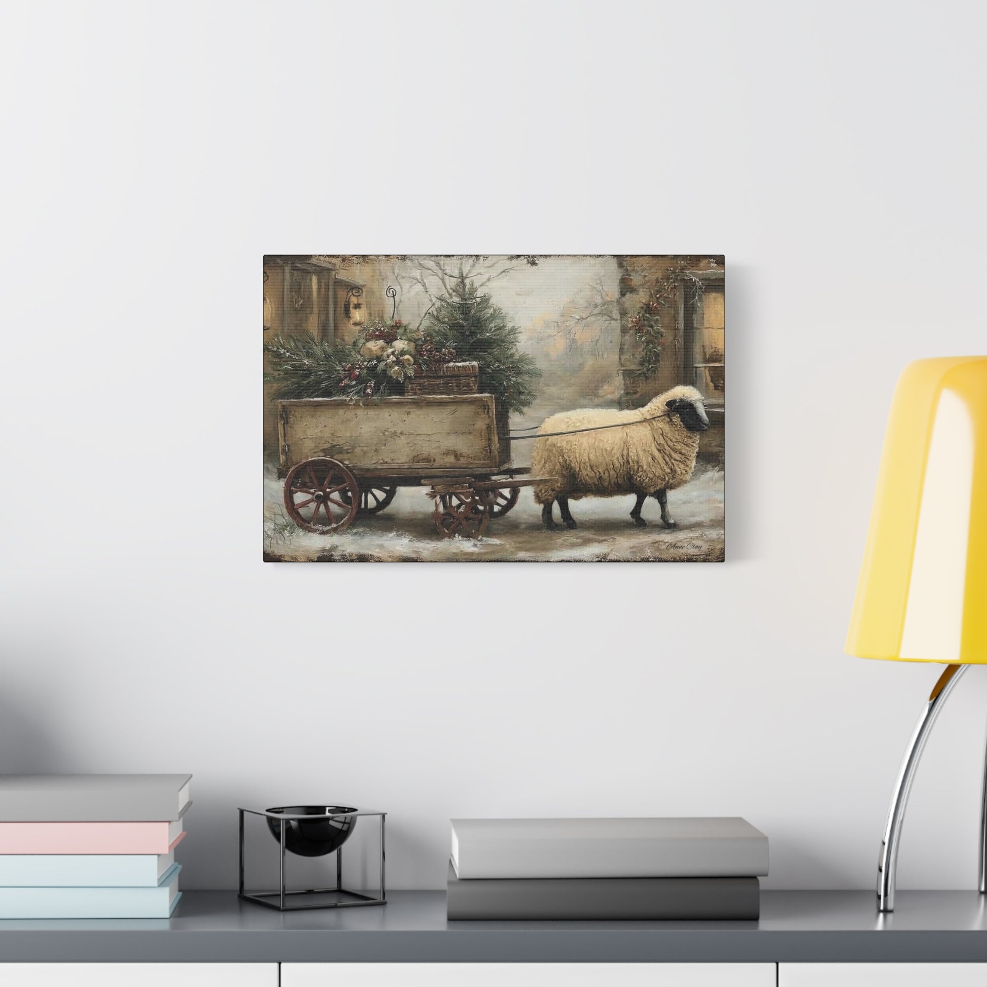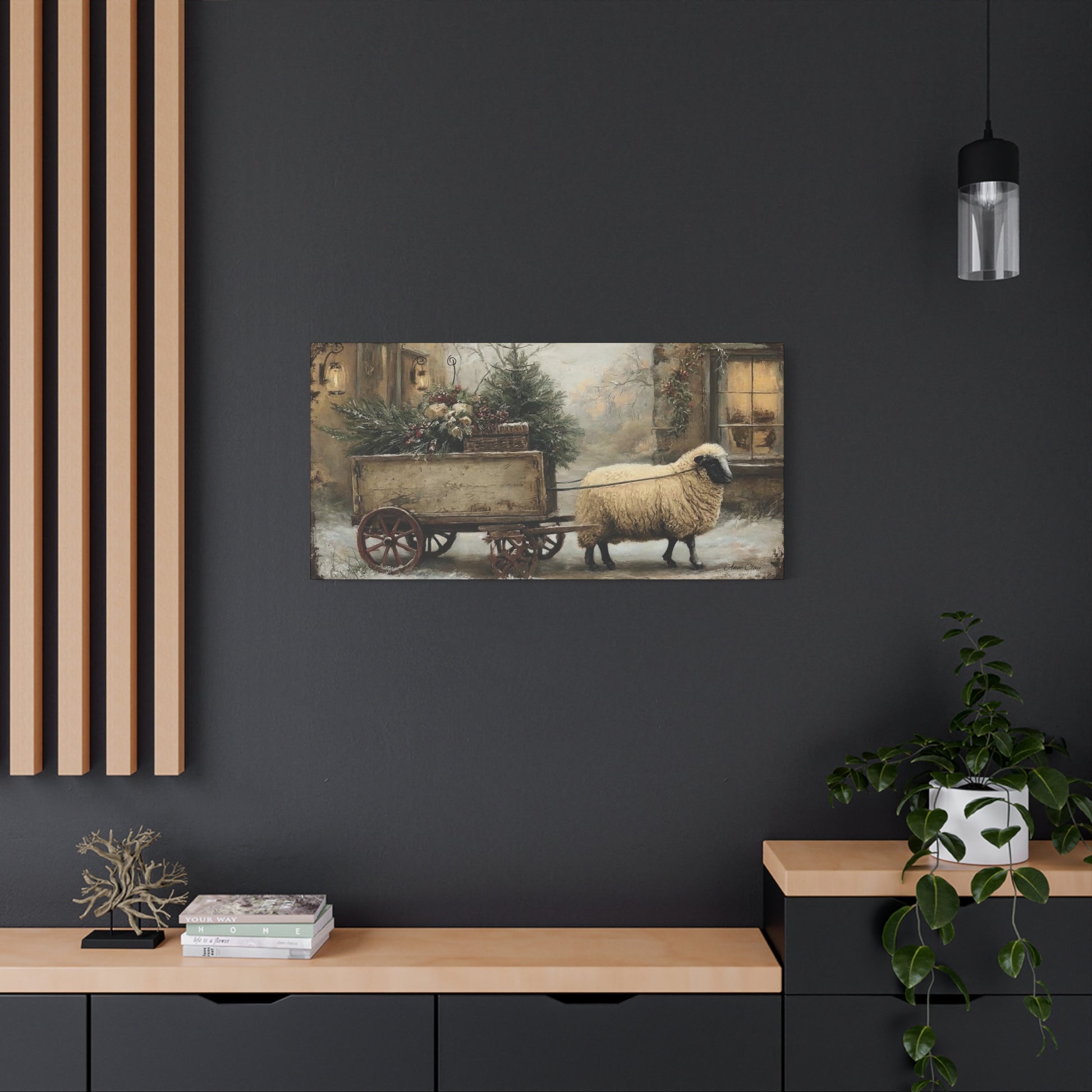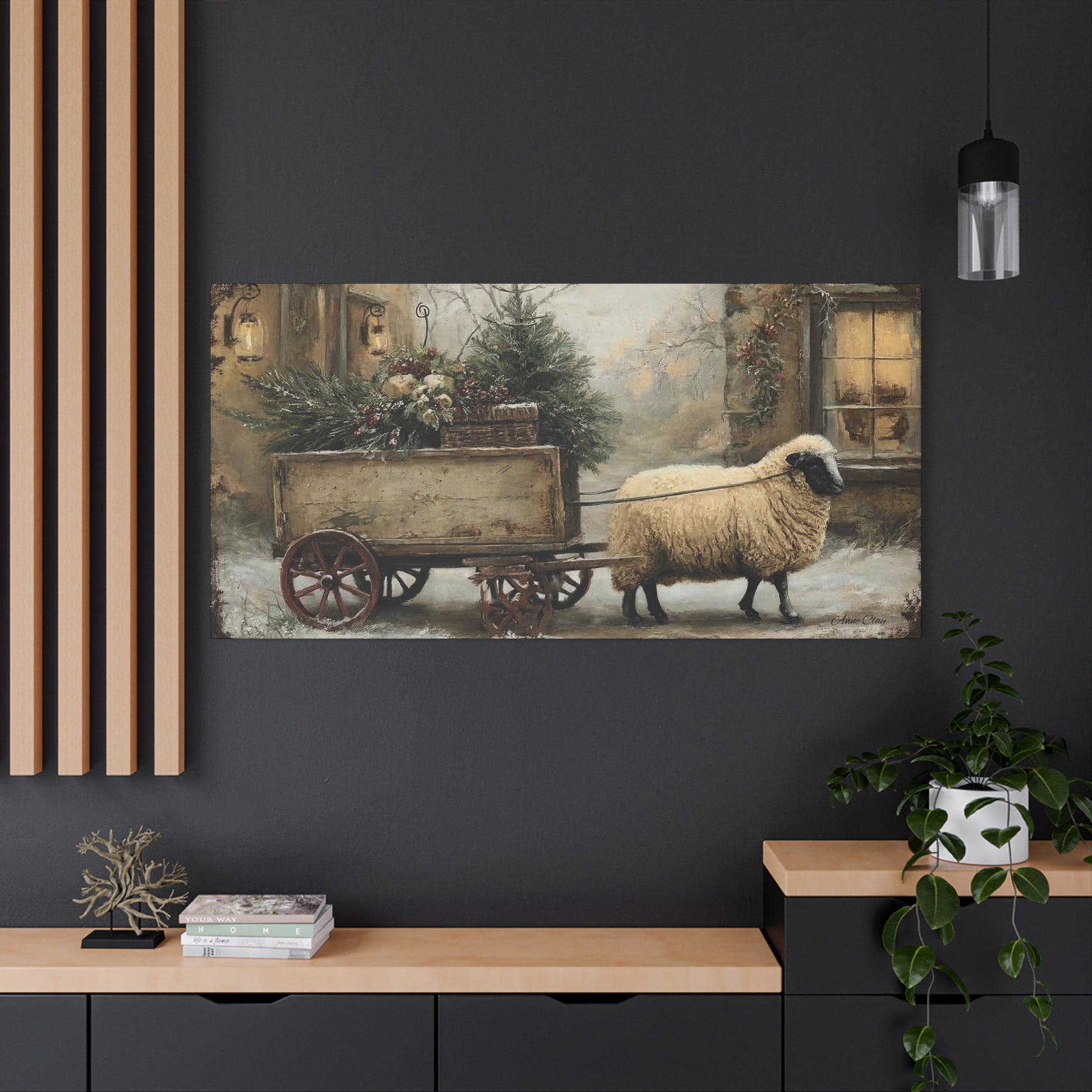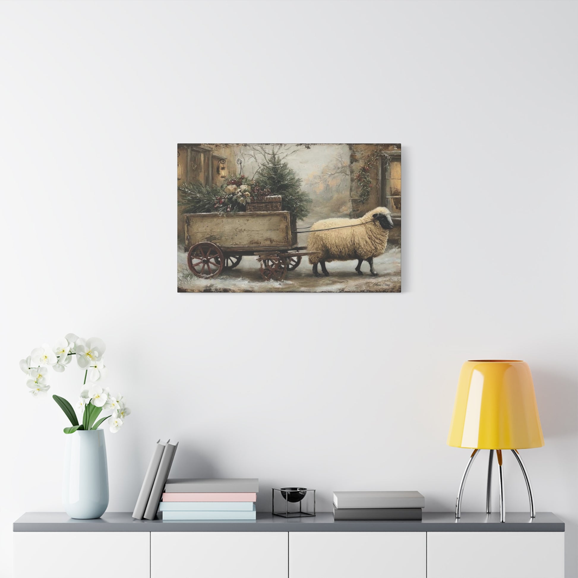 Transform your space with this elegant Matte Canvas, adding a touch of rustic charm to your home decor. Featuring a serene winter scene with a sheep and a cart filled with festive greenery, this canvas effortlessly enhances any room's ambiance. Perfect for creating a cozy atmosphere, it fits seamlessly into living rooms, dining areas, or entryways. Ideal for art lovers and nature enthusiasts, this piece serves as a delightful addition to your home or as a thoughtful gift. Celebrate holidays, seasonal gatherings, or simply add a warm touch to your everyday life with this timeless artwork.