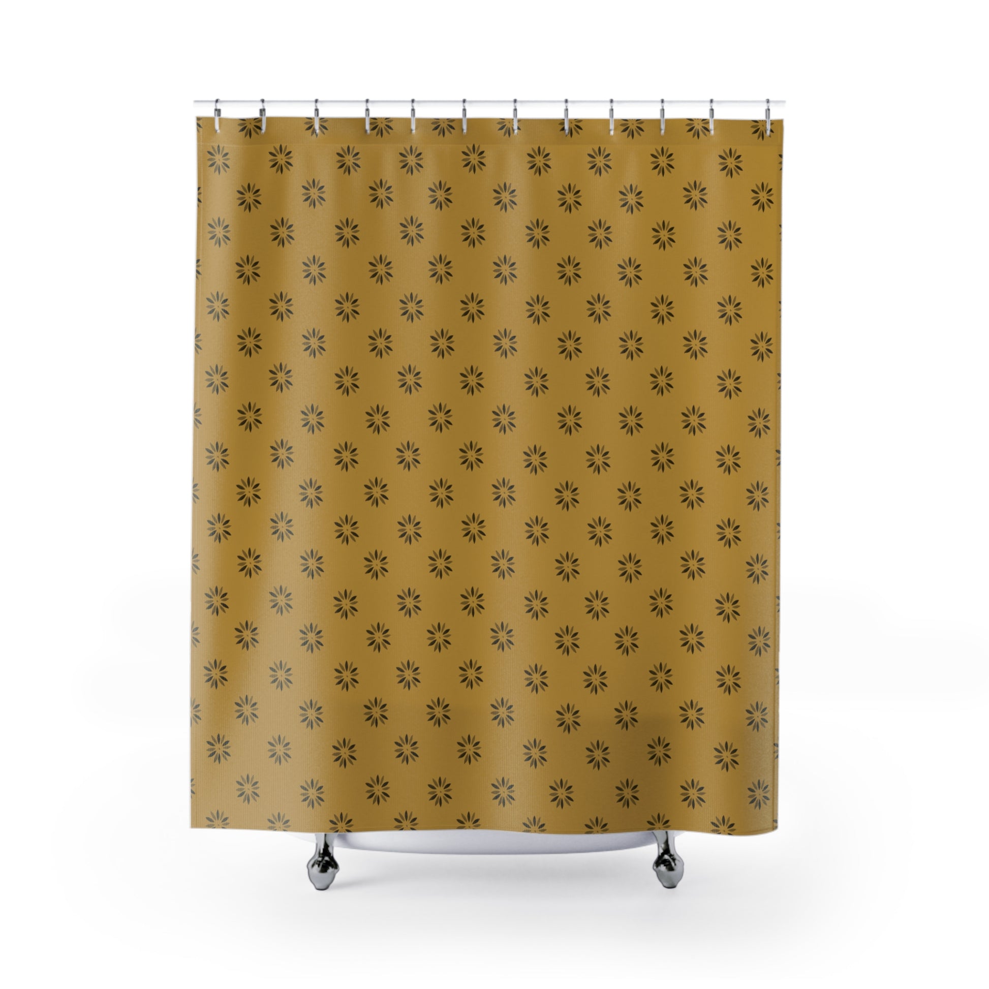 Small Black Daisy Stencil on Mustard Shower Curtains