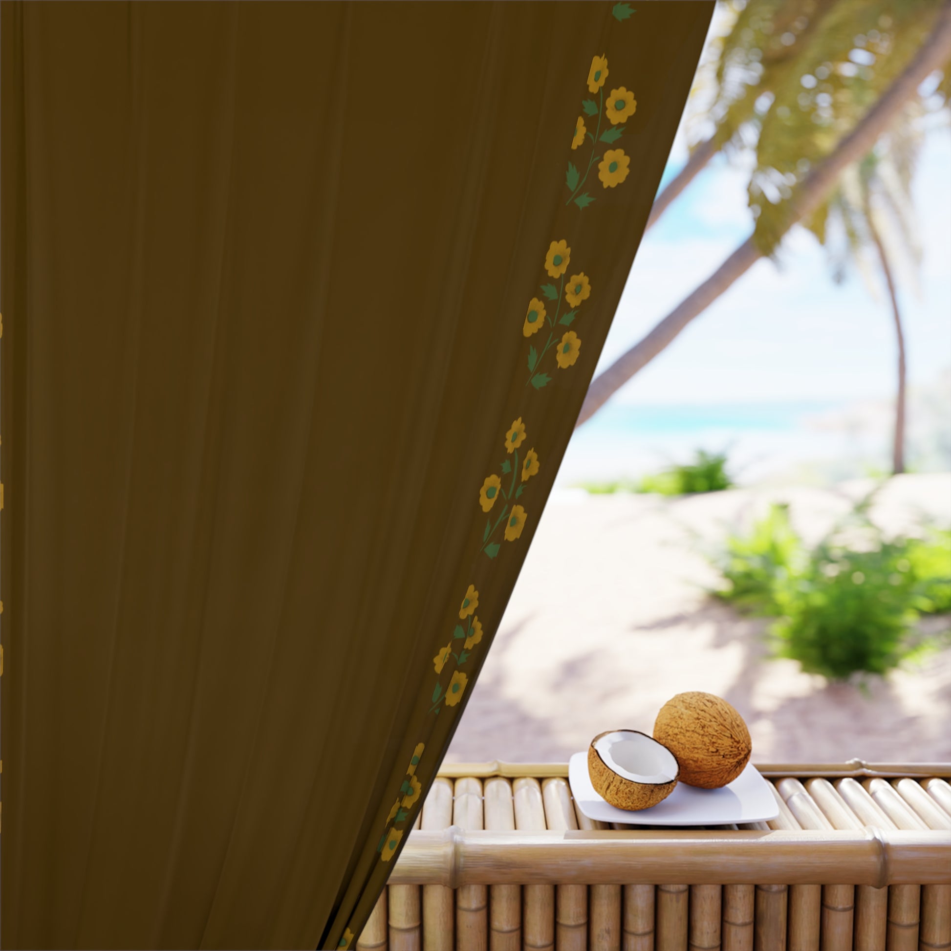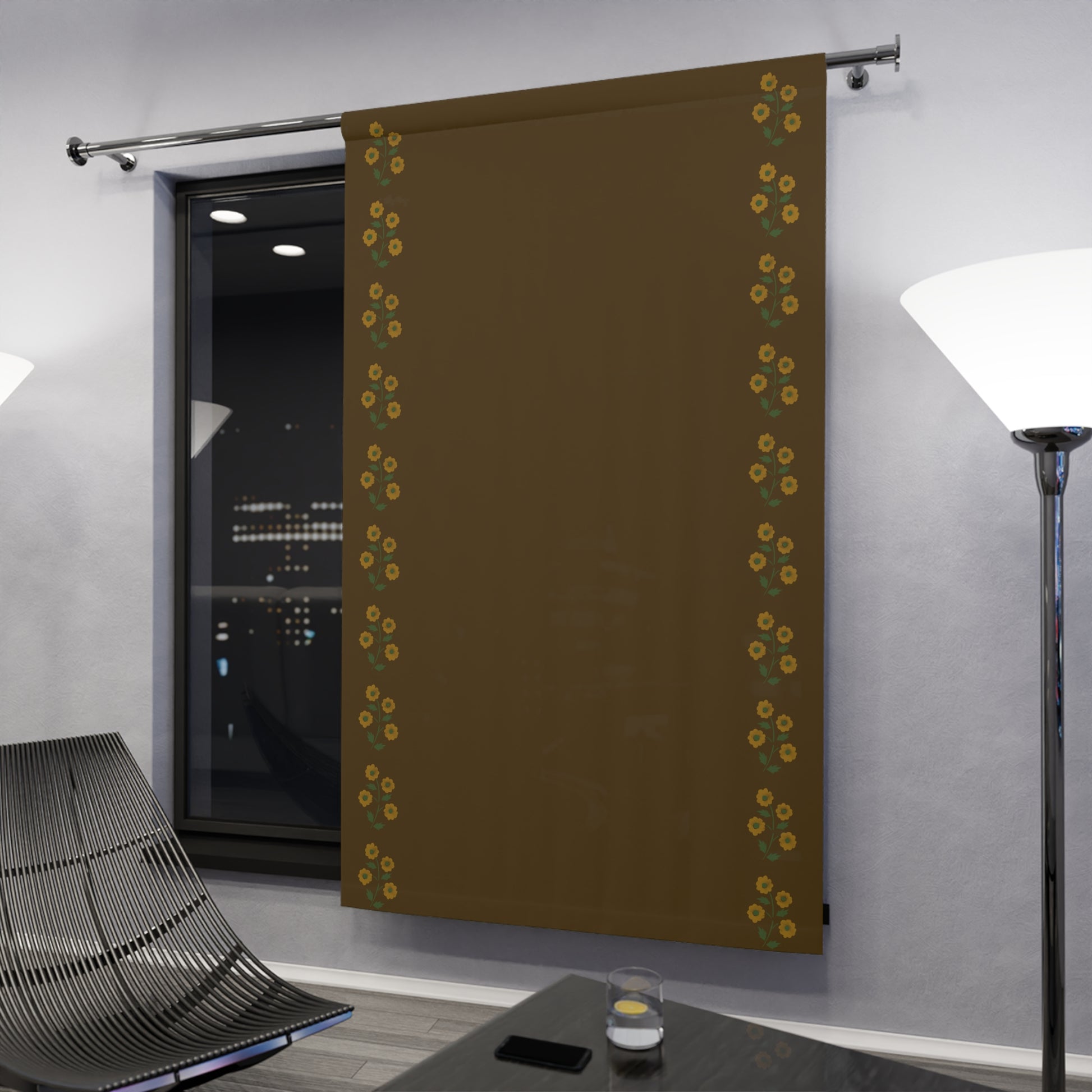 Stencil Flower on Brown Window Curtains (1 Piece)