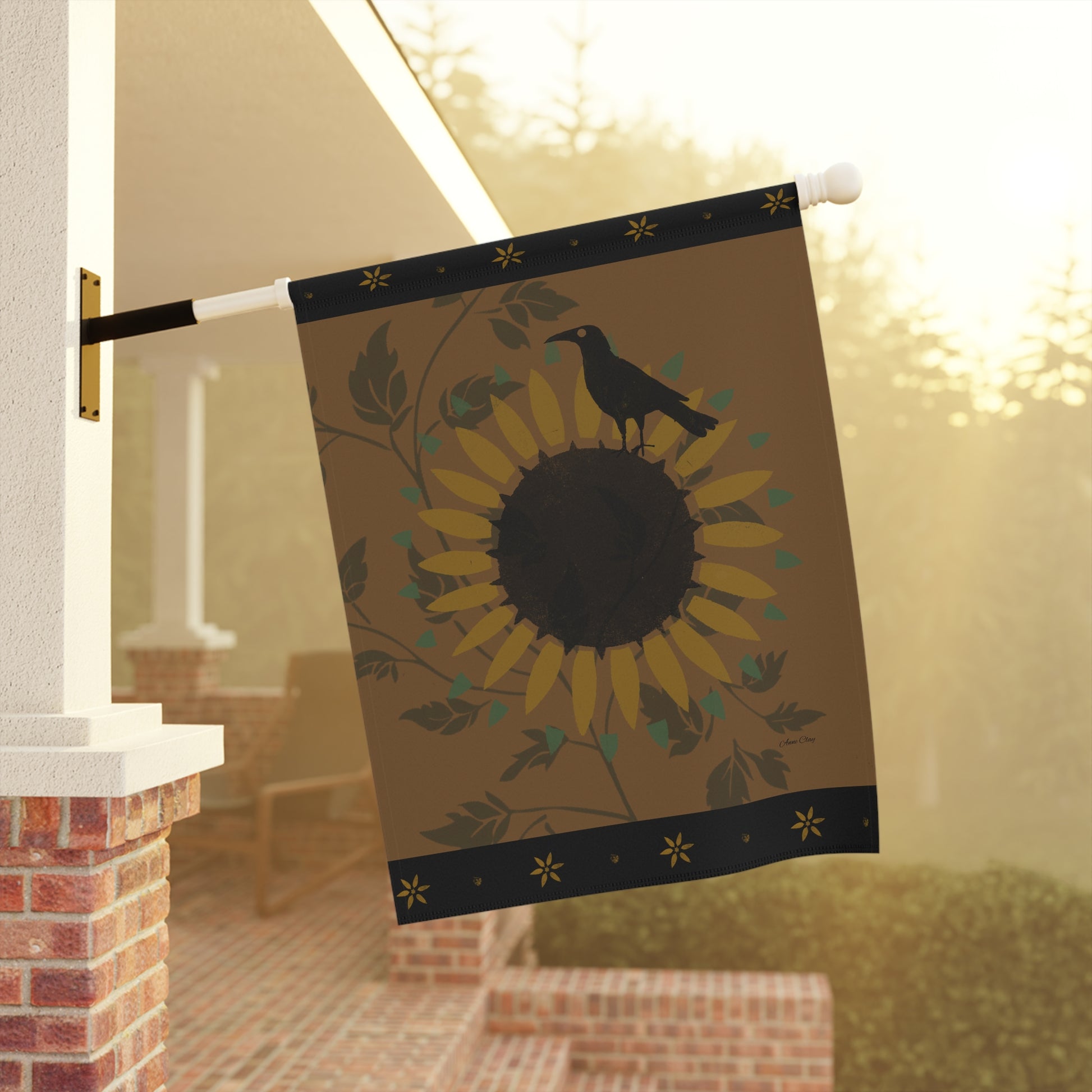 Sunflower and Crow Stencil Gold on Black Garden & House Banner