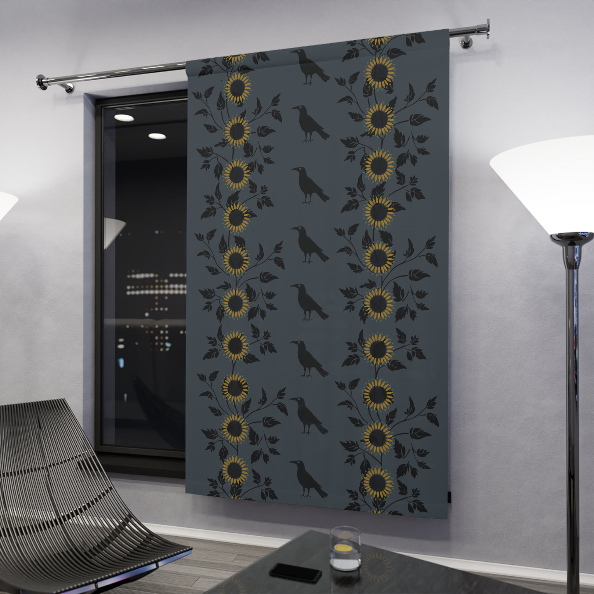 Sunflowers and Crows on Blue Window Curtains (1 Piece)