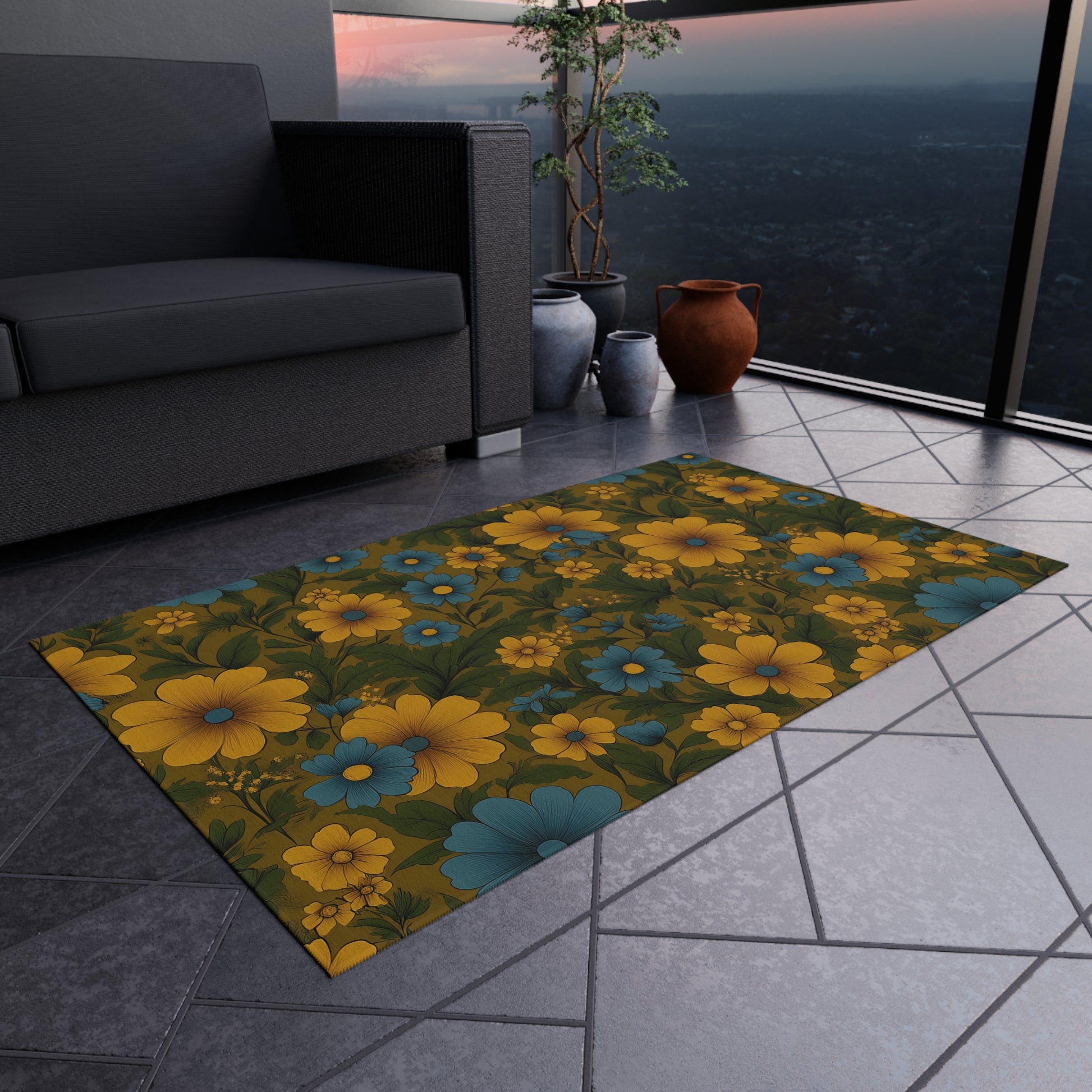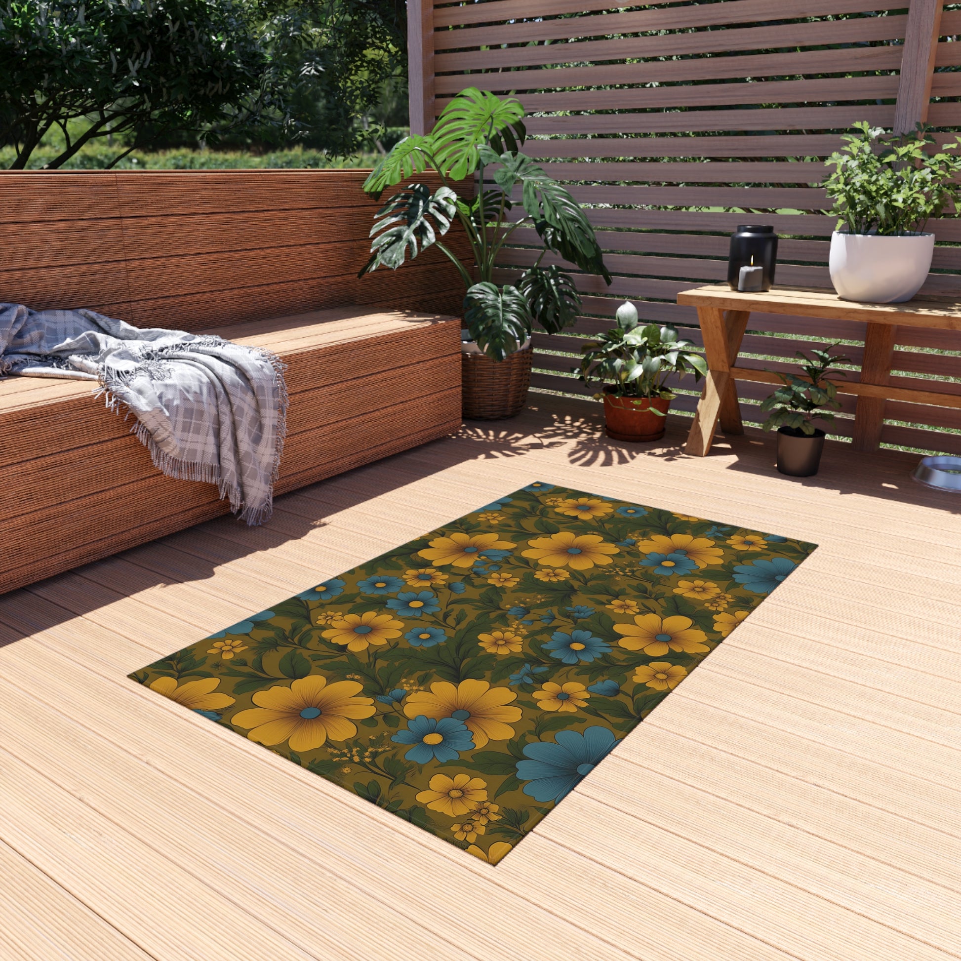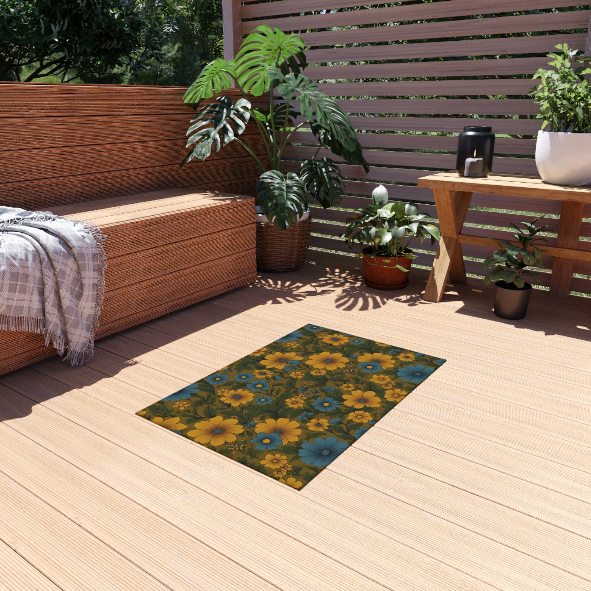 Vibrant Floral Outdoor Rug, Patio Decor, Garden Mat, Boho Style Rug, Home Entrance Decoration