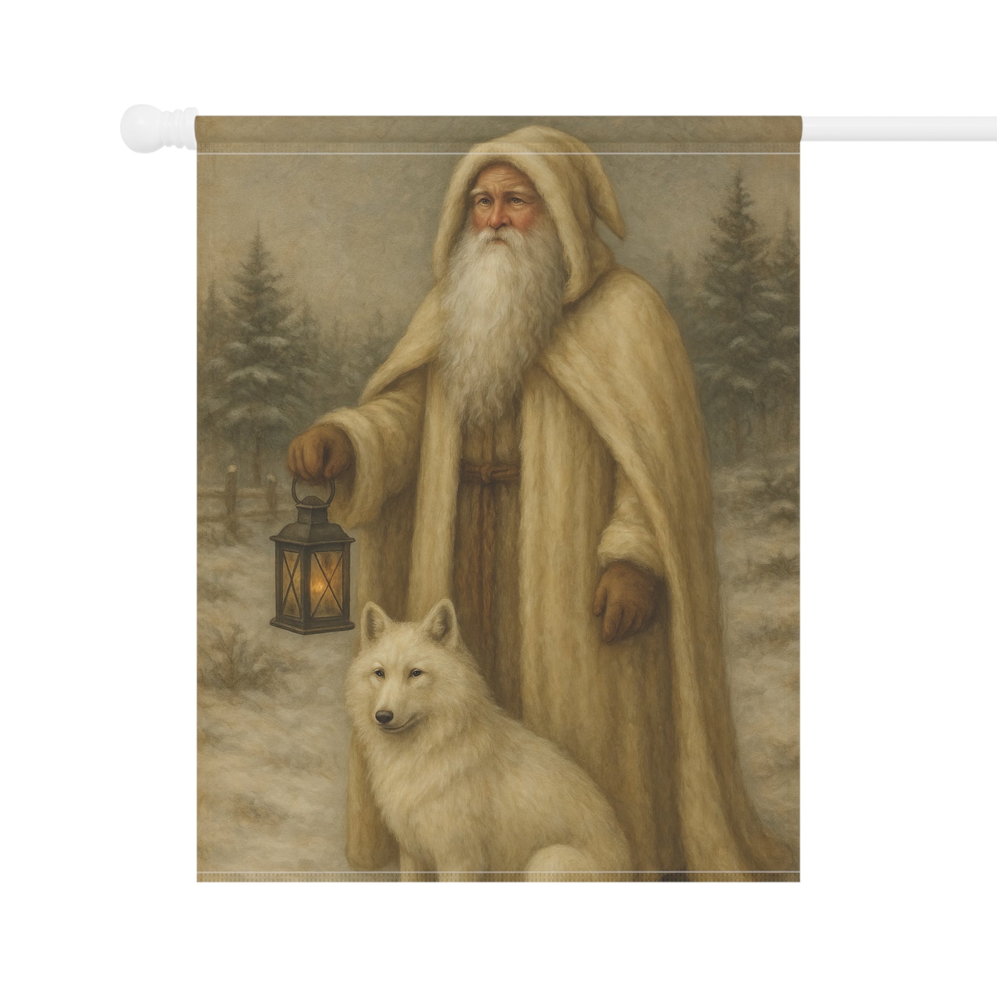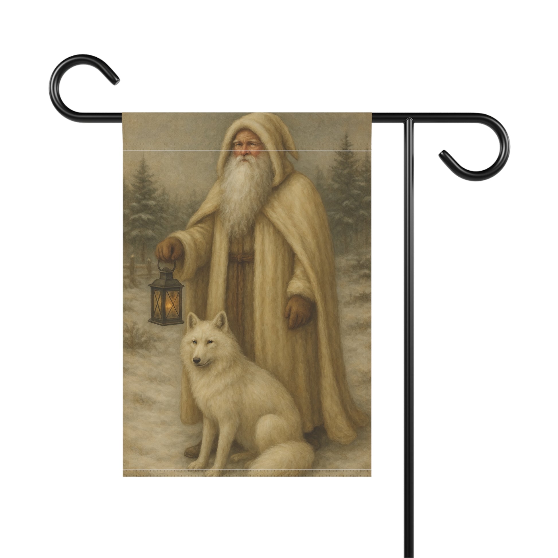Winter-Themed Garden Banner Featuring a Lantern-Secured Santa and Arctic Fox, Cozy Home Decor for the Holidays, Outdoor Display, [...]
